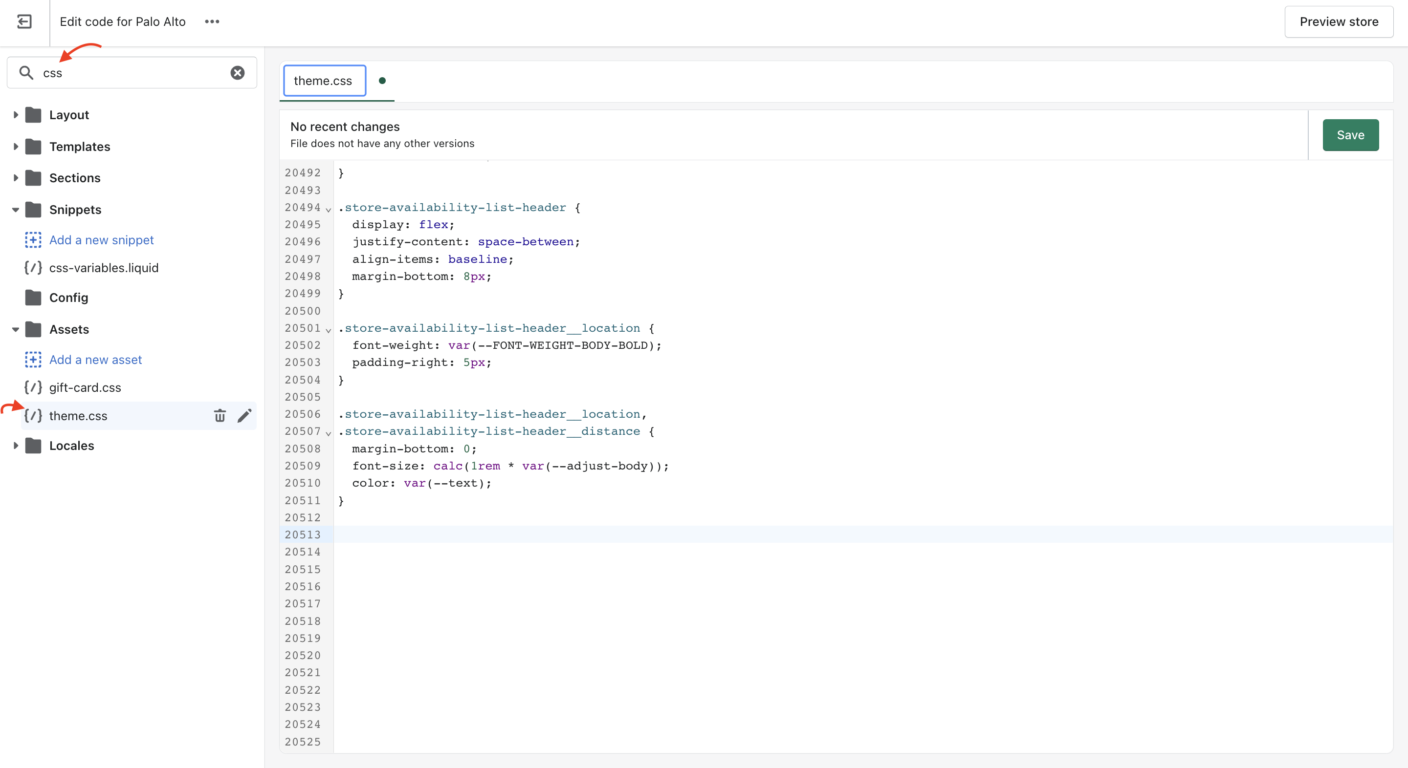 For developers who would like to use the Code Editor, it's very important to add your custom CSS at the bottom of the theme.css file, which is located in the assets folder.