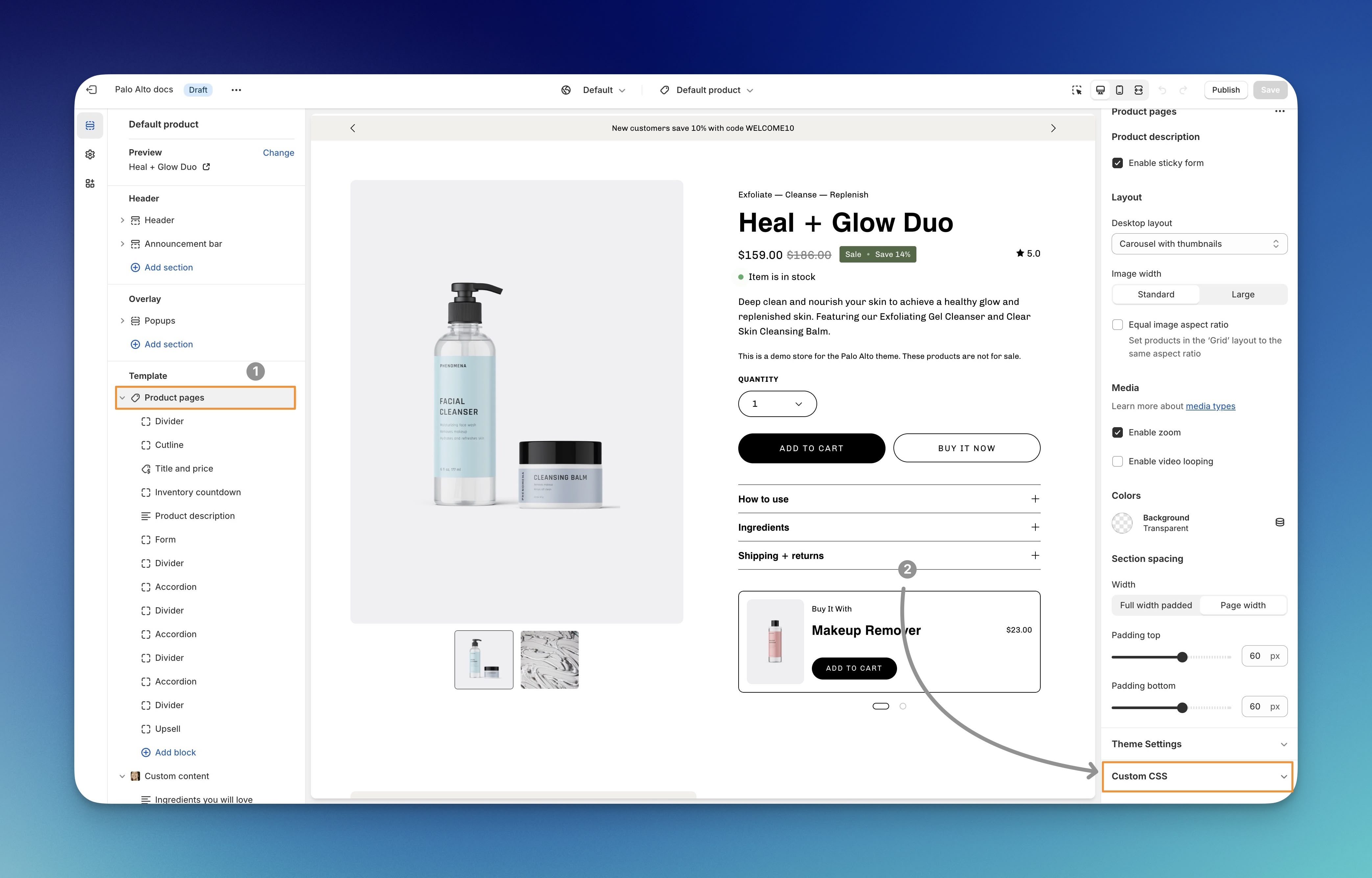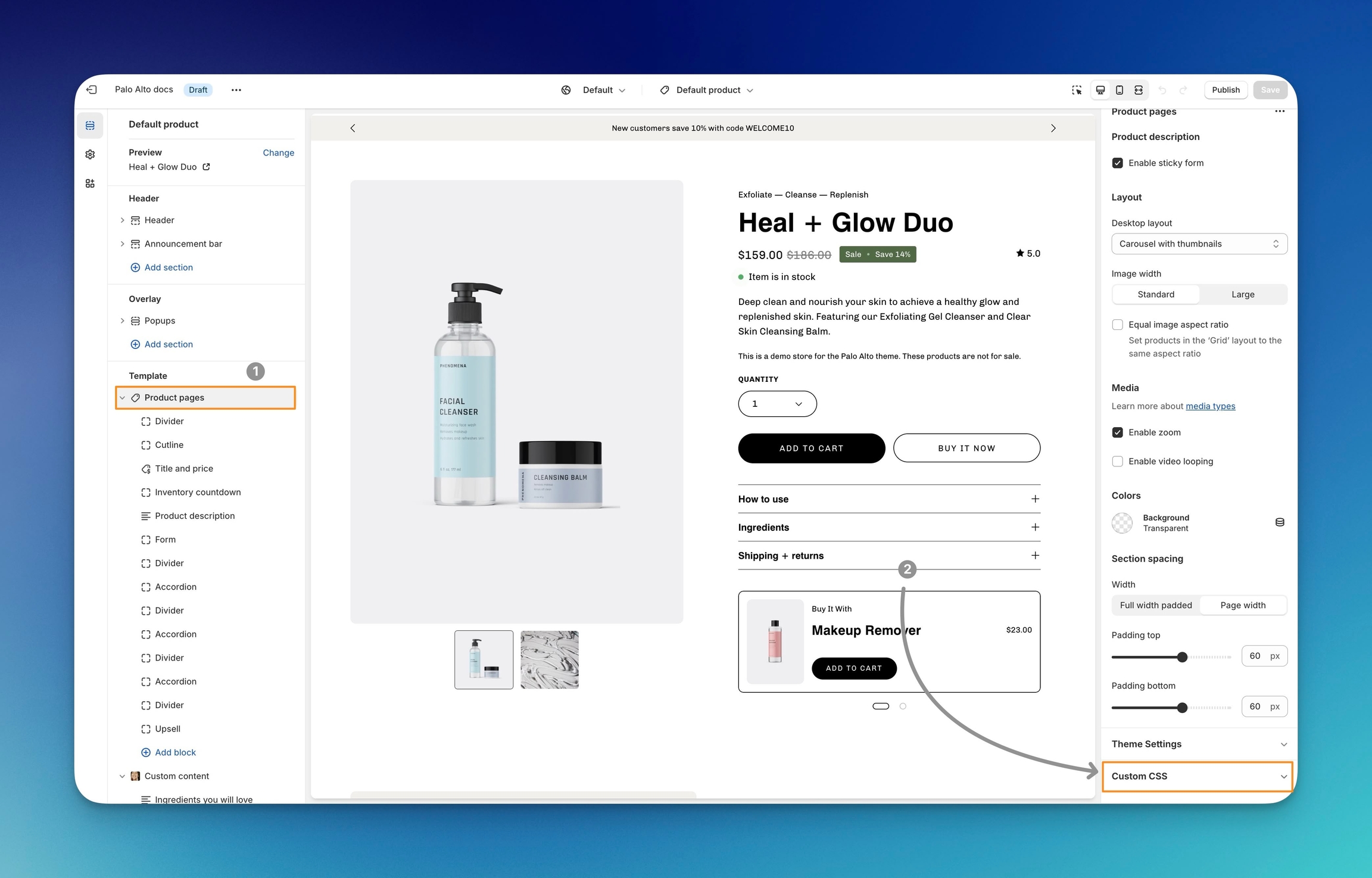 Click on "Product pages" in the Theme Customizer sidebar.