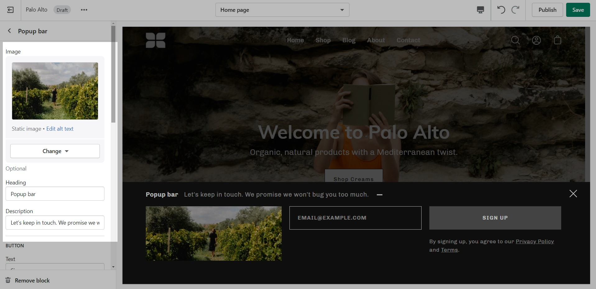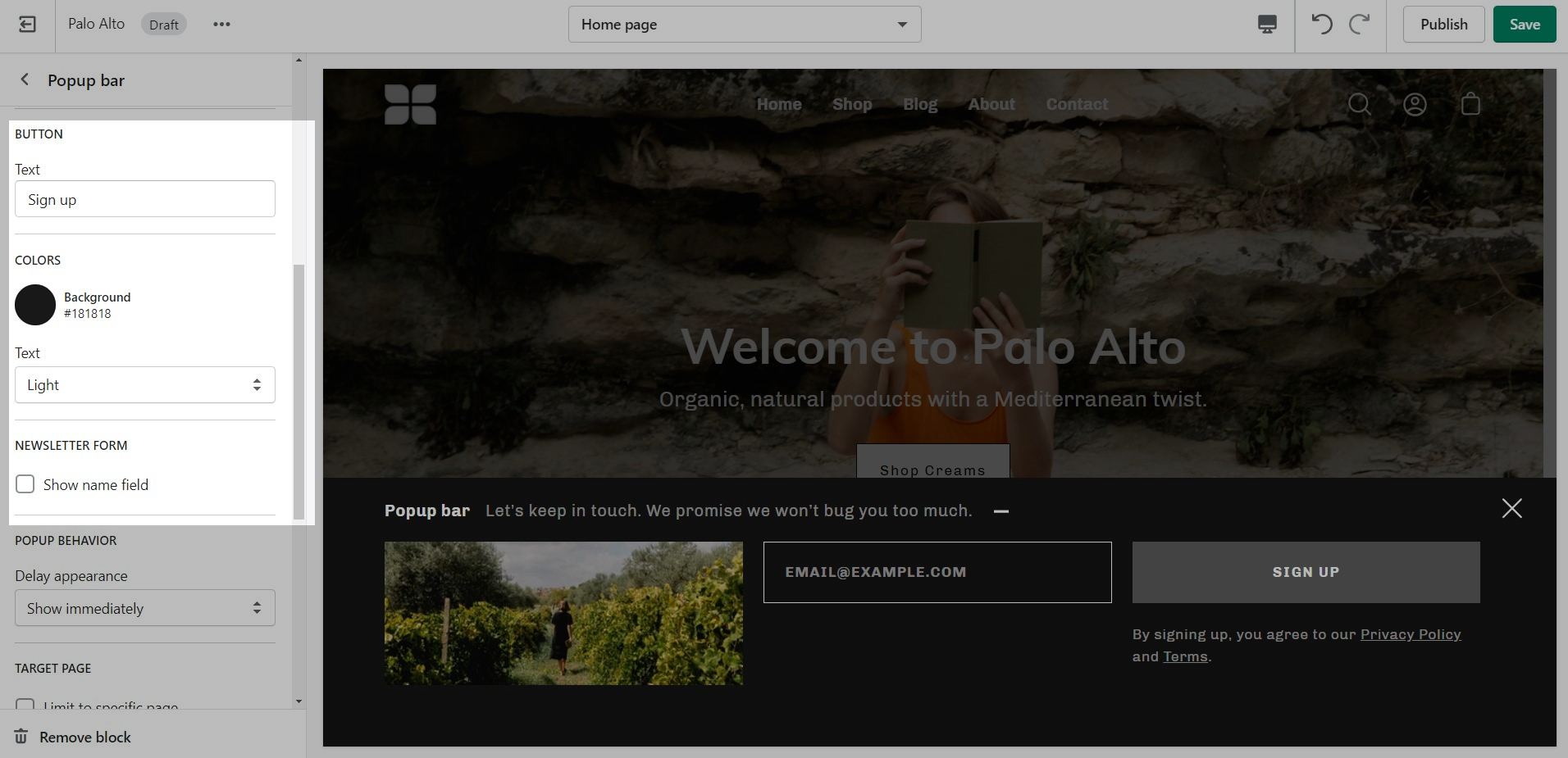 Button, Color, and Newsletter