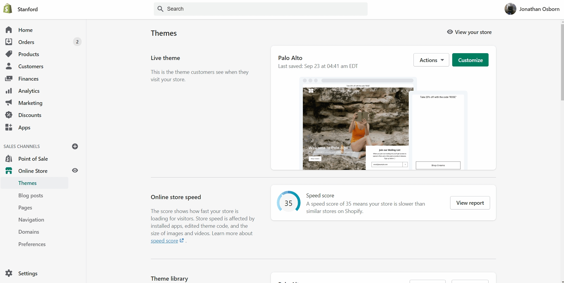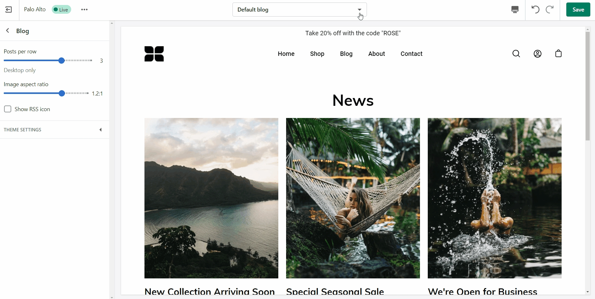 The last step is to assign the new template to one of your blogs so that it can take the new style you've created. This is done by going into your Online Store > Blog posts and clicking on Manage blogs. Once you've found the blog you're looking to change, simply change the template name from the 'Theme template' tab.
