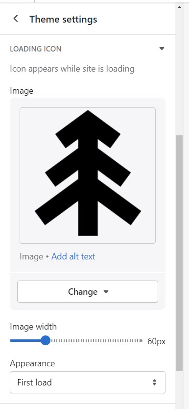 The settings for the custom loading icon can be found inside the Theme Editor under Theme Settings > Loading Icon: