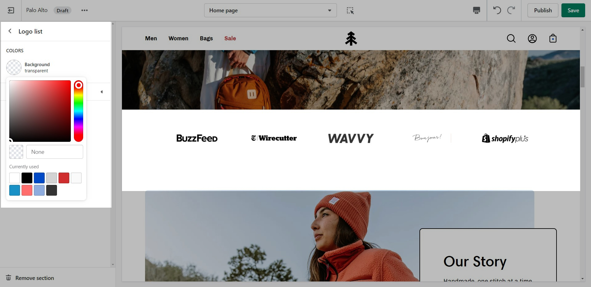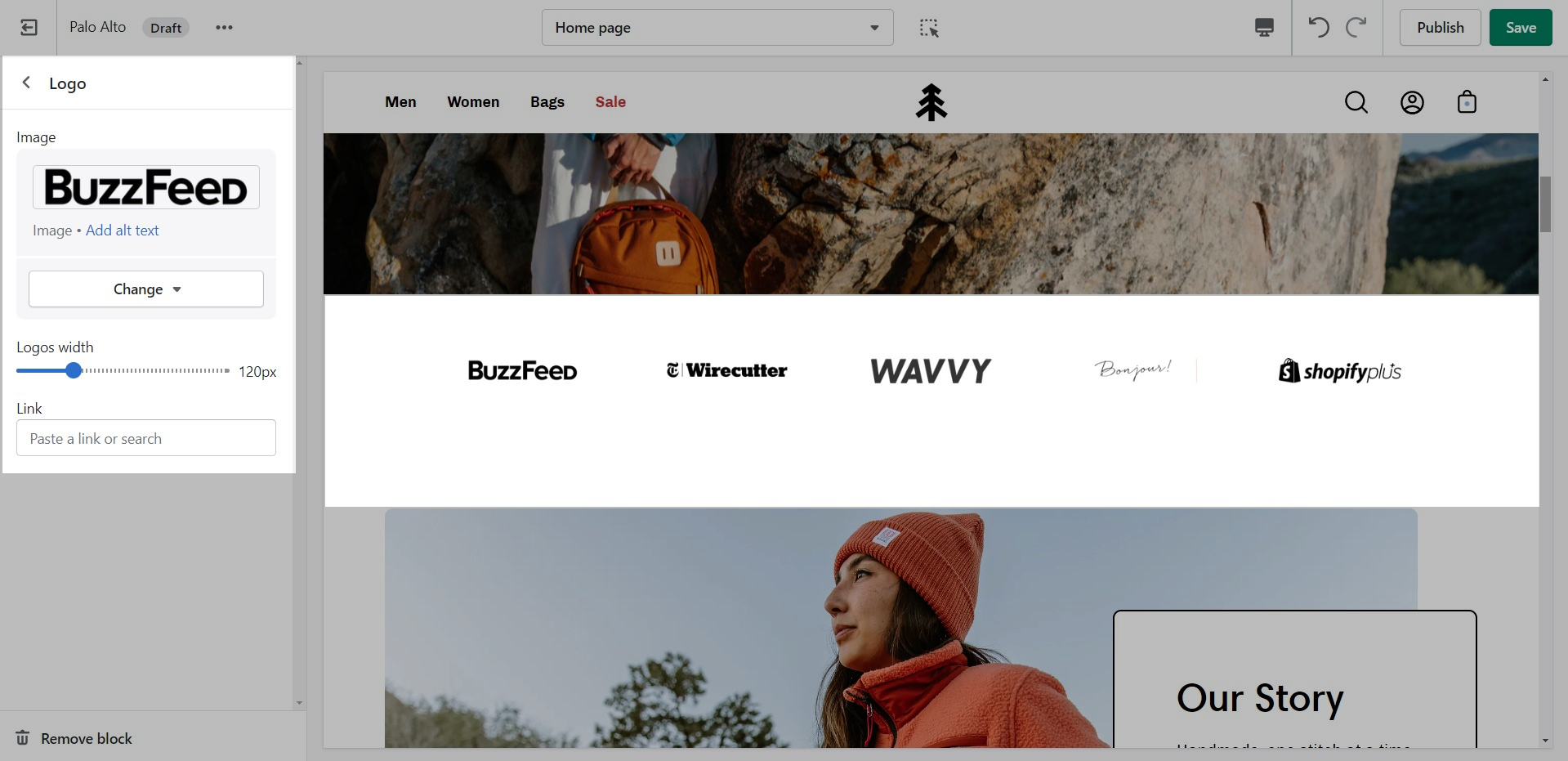 'Logo List' creates a carousel view that you can use to showcase your brand or partnered brand logos.