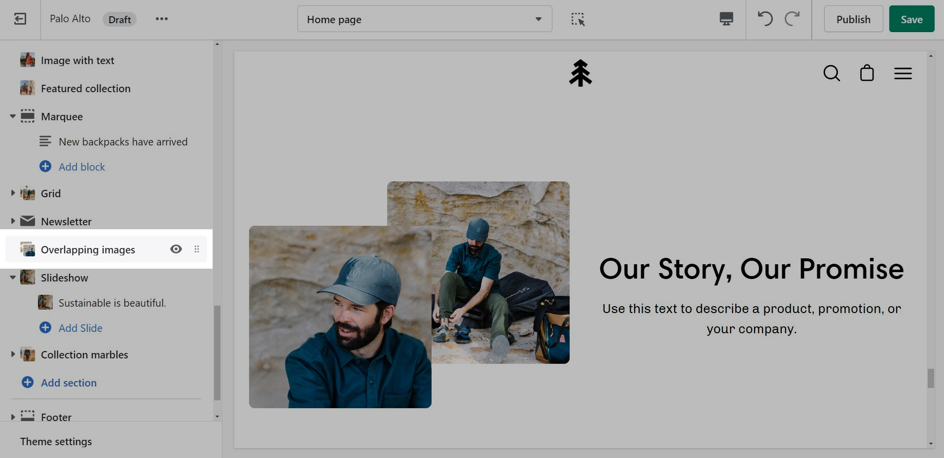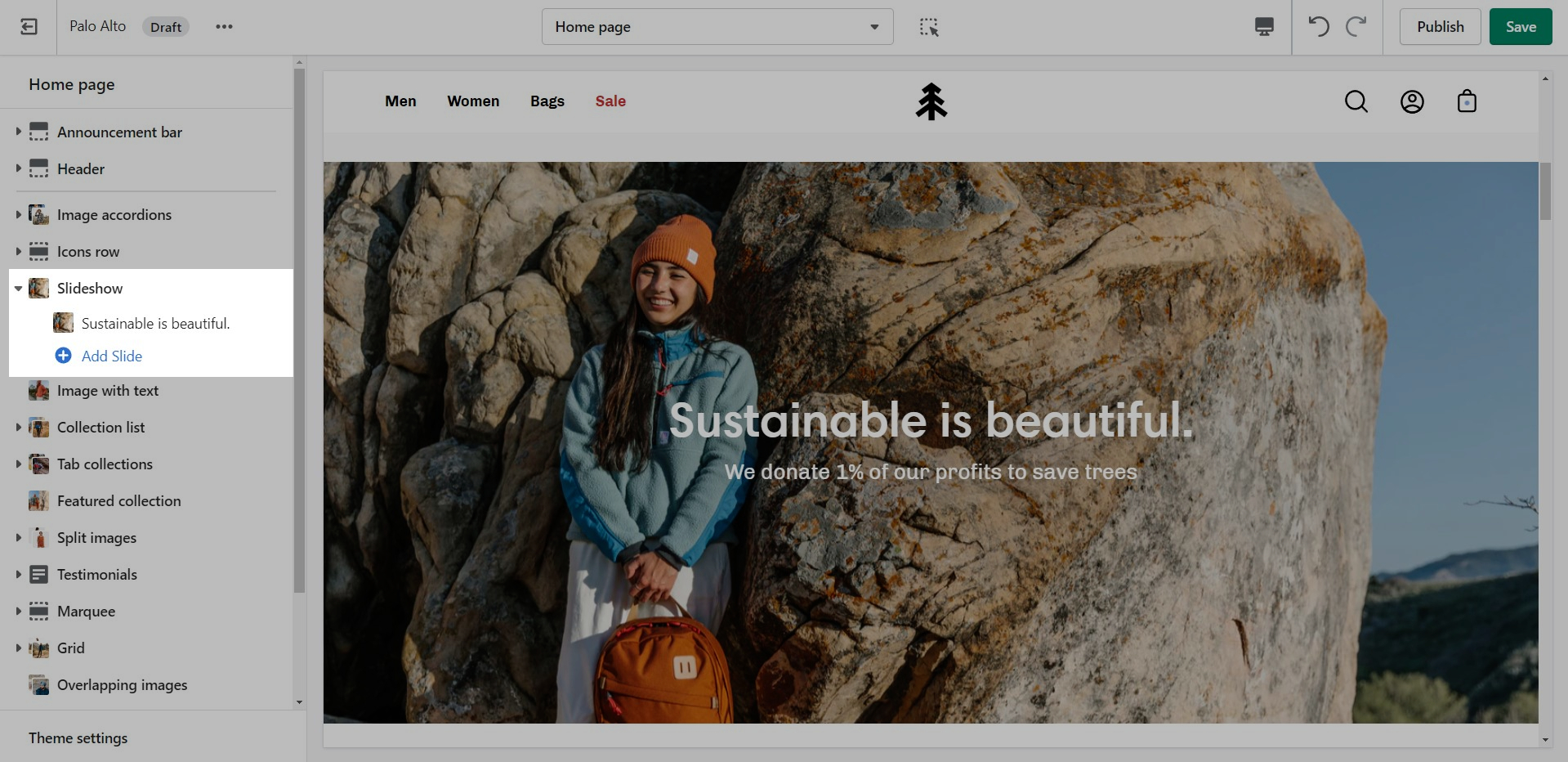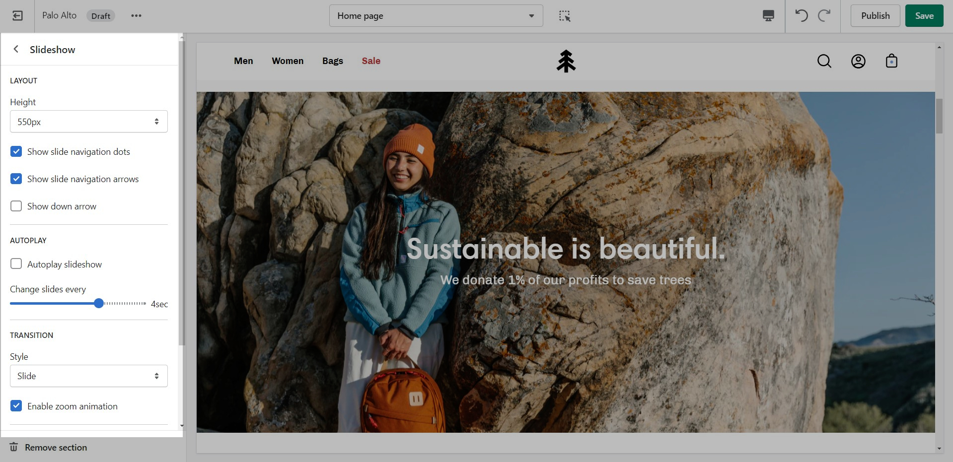 This is the perfect hero section for most stores. Use the Slideshow to create a home page banner with incredible customizability.