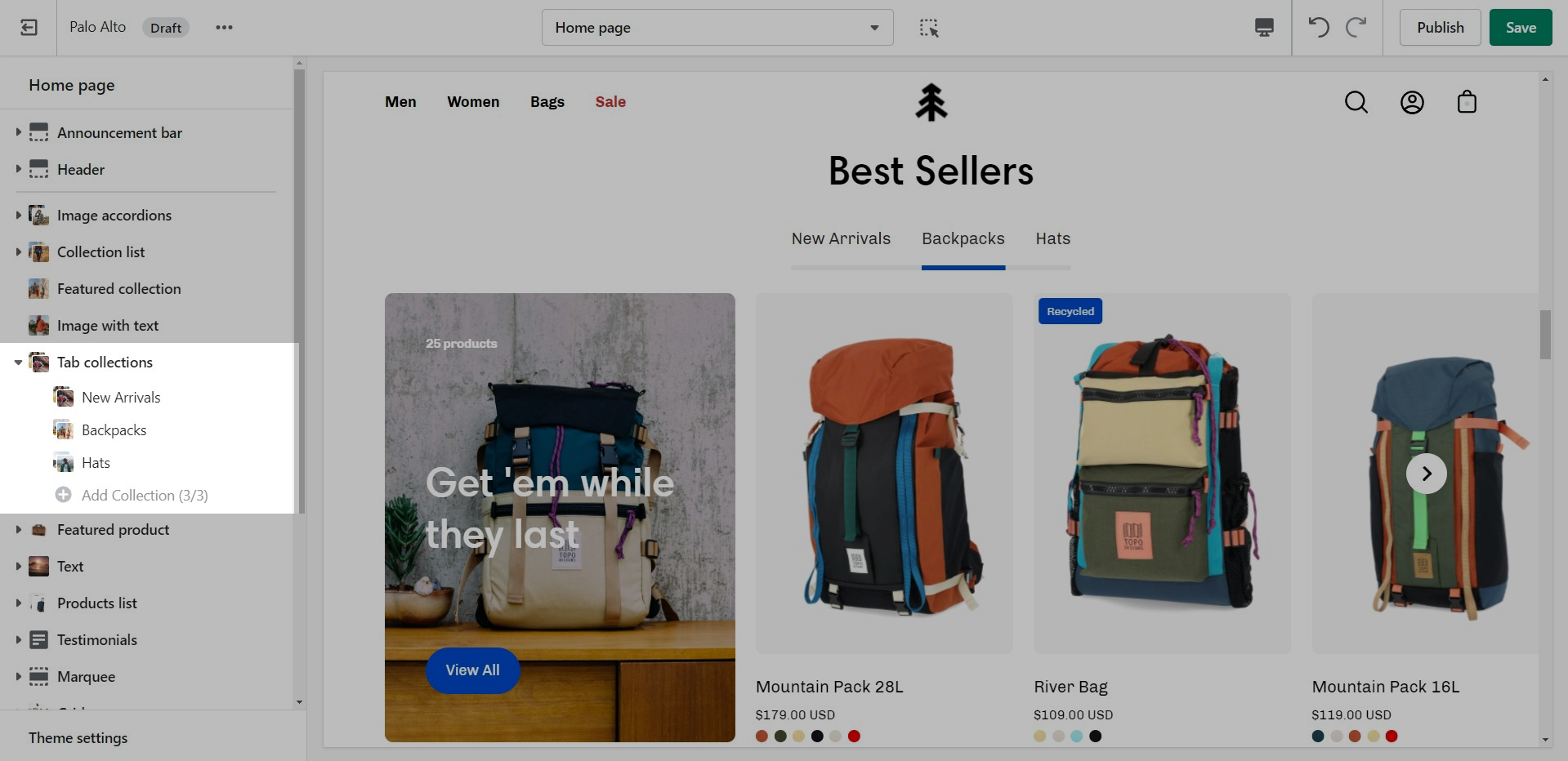 Showcase up to three collections on your store pages.