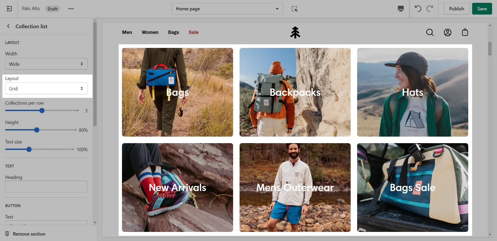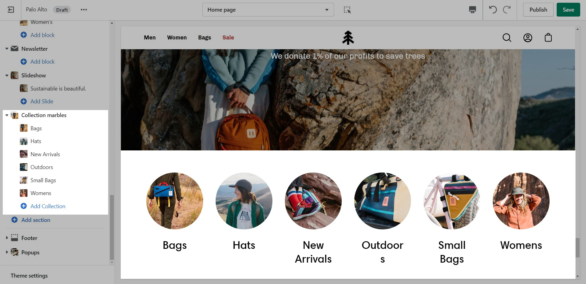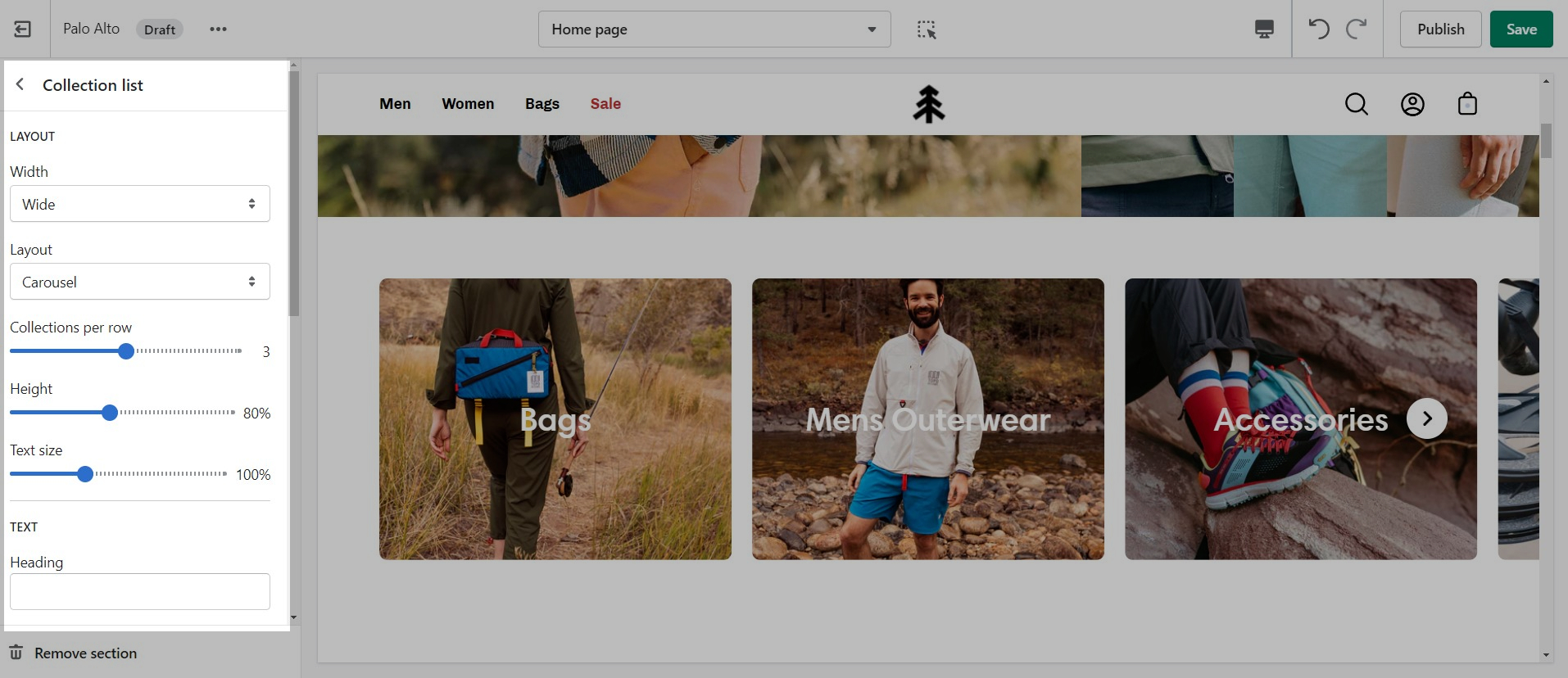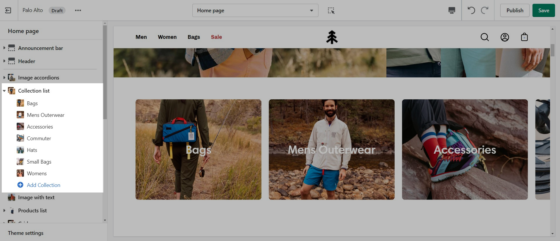The 'Collection list' section is here to help you add links to collections you want to highlight on your store pages. This is a quick and easy way to run promotions or let your customers know about new collections.