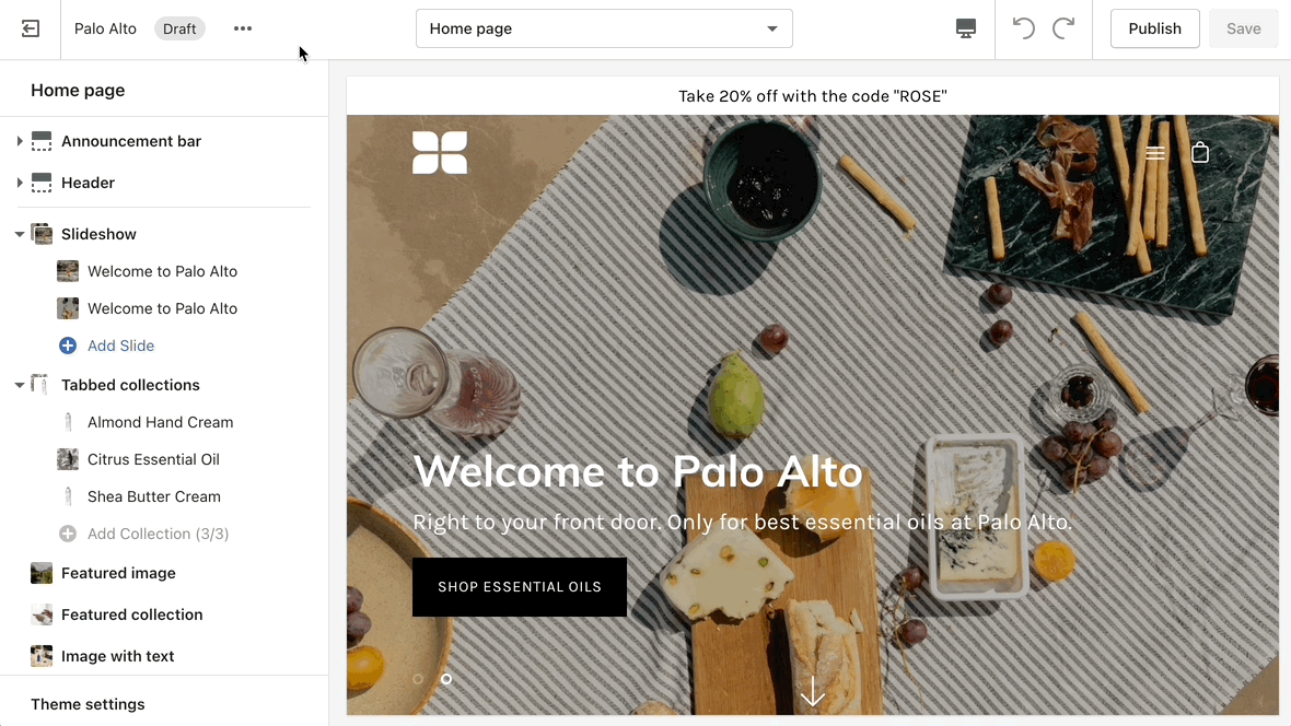 In the Theme Editor, click on the ellipses (three dots) icon at the top of the Theme Editor to view theme actions.