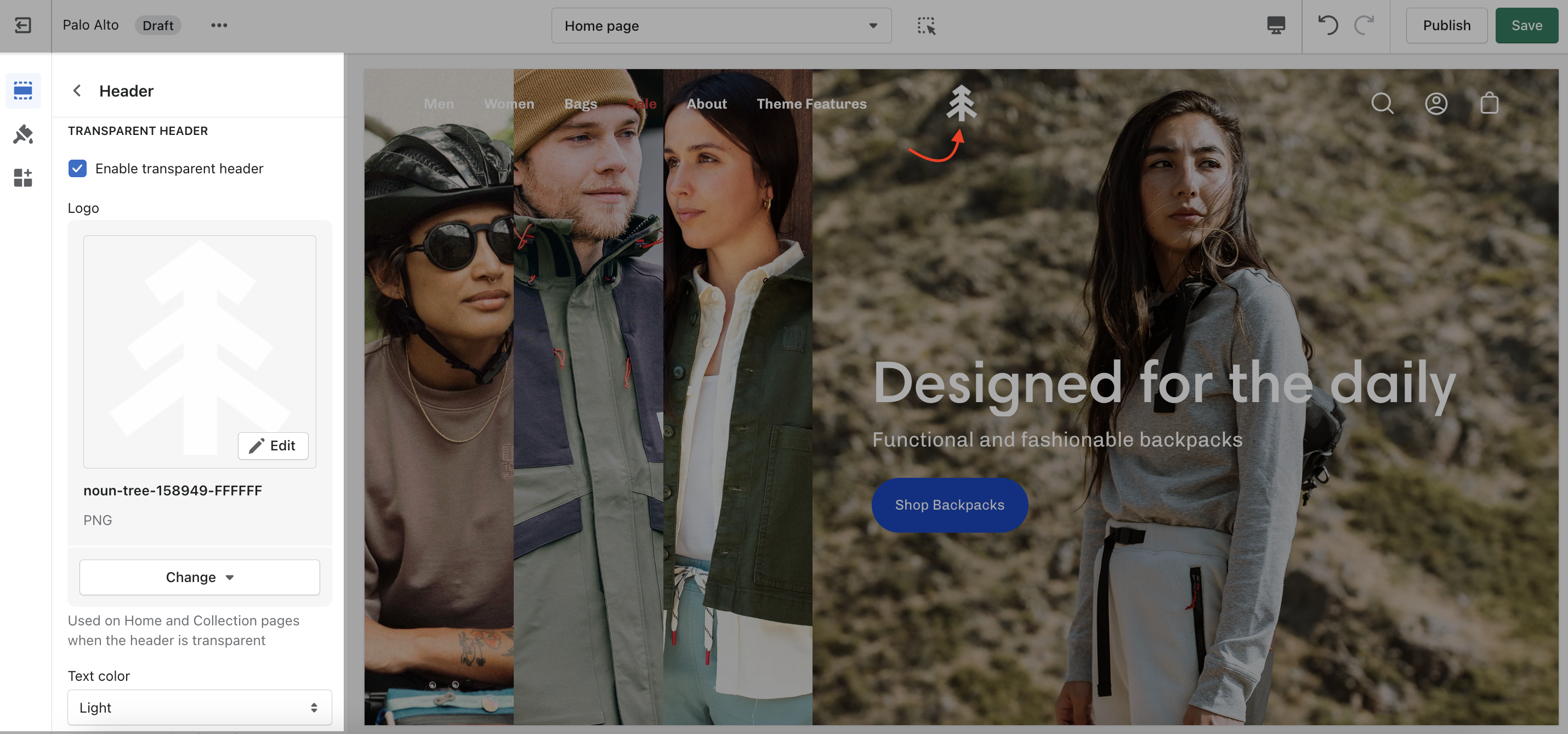 ## Uploading a logo for your Transparent header.