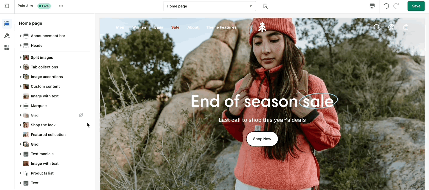 Palo Alto includes ready-to-use page templates for your store including: