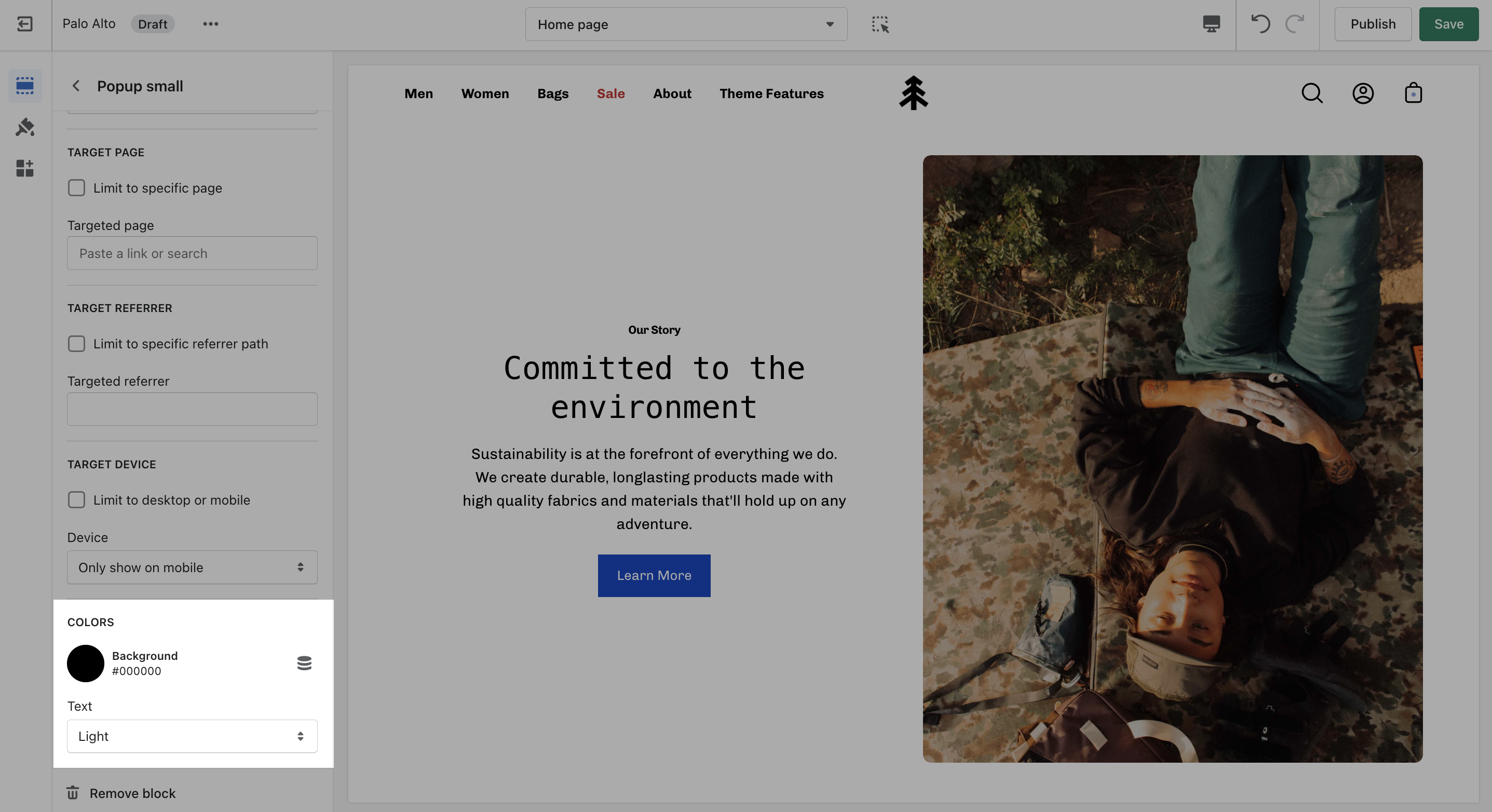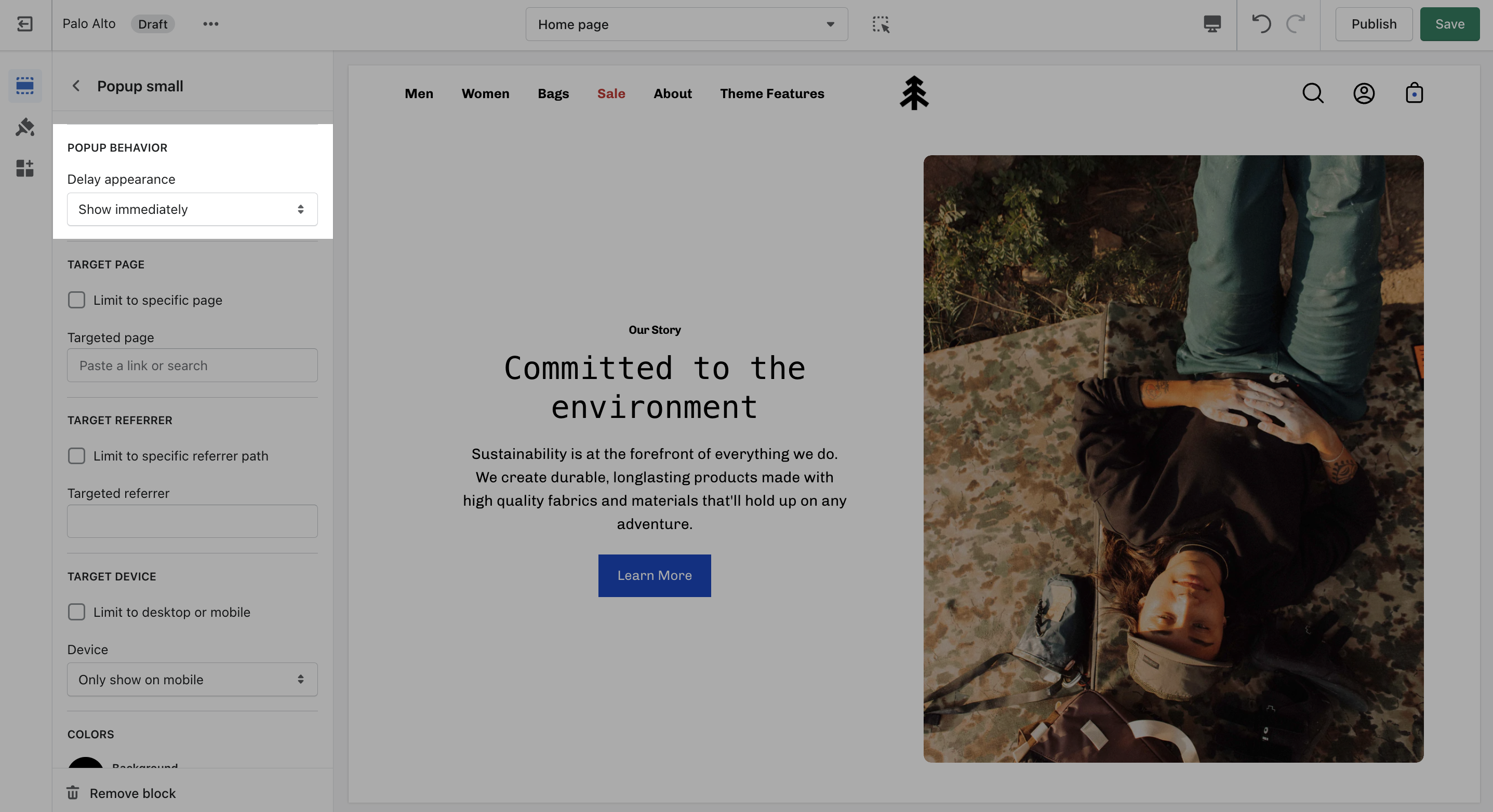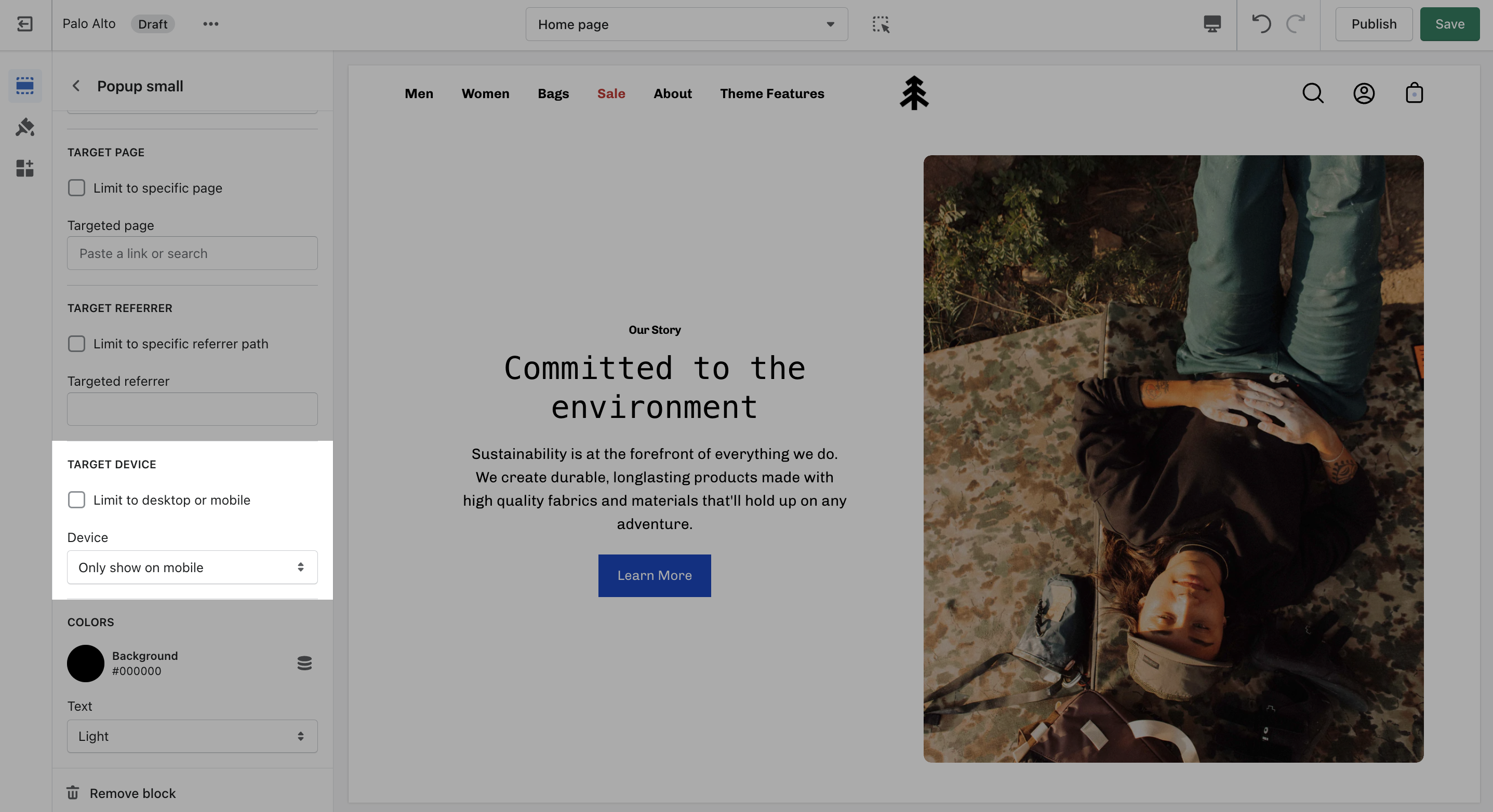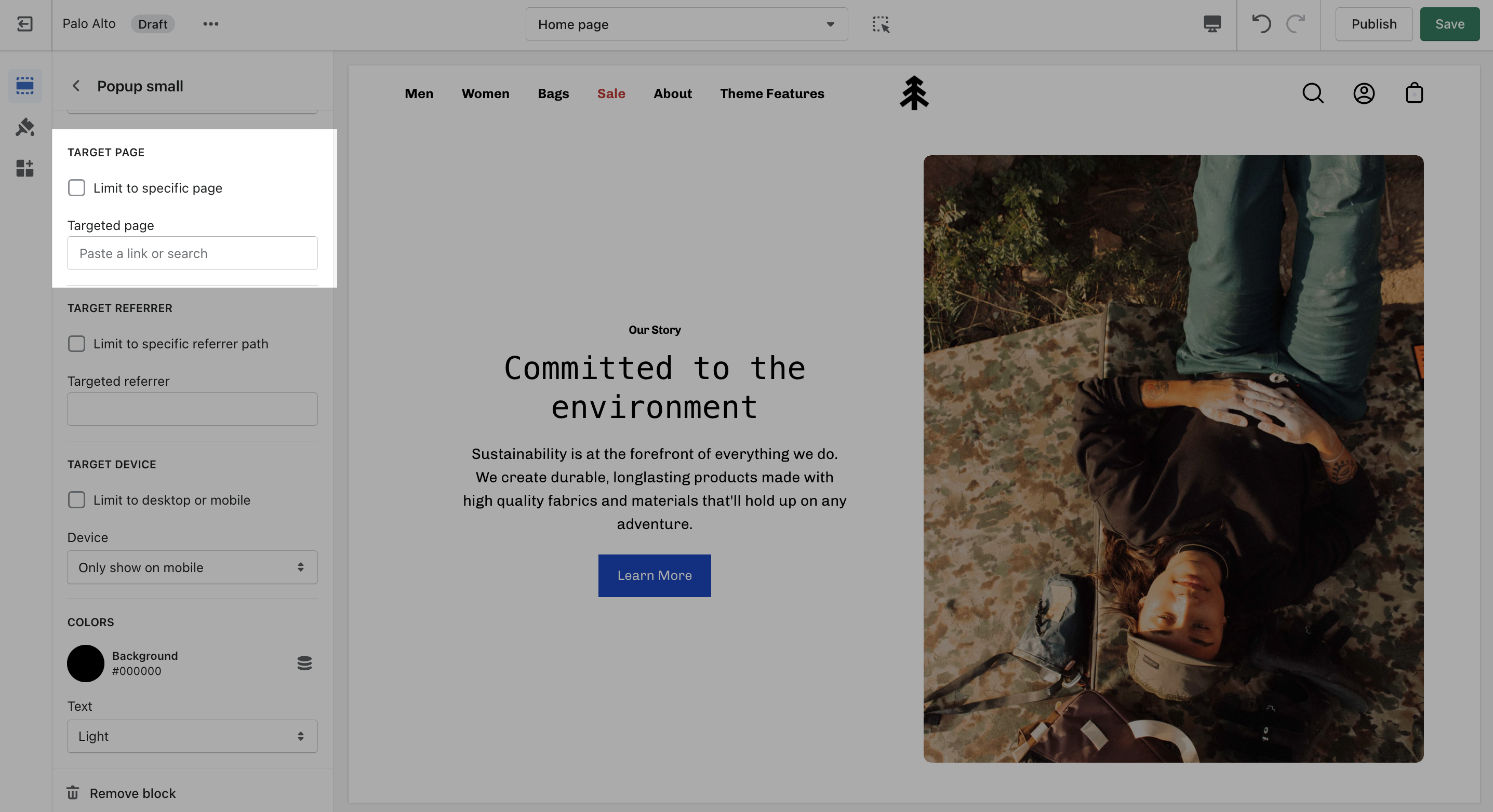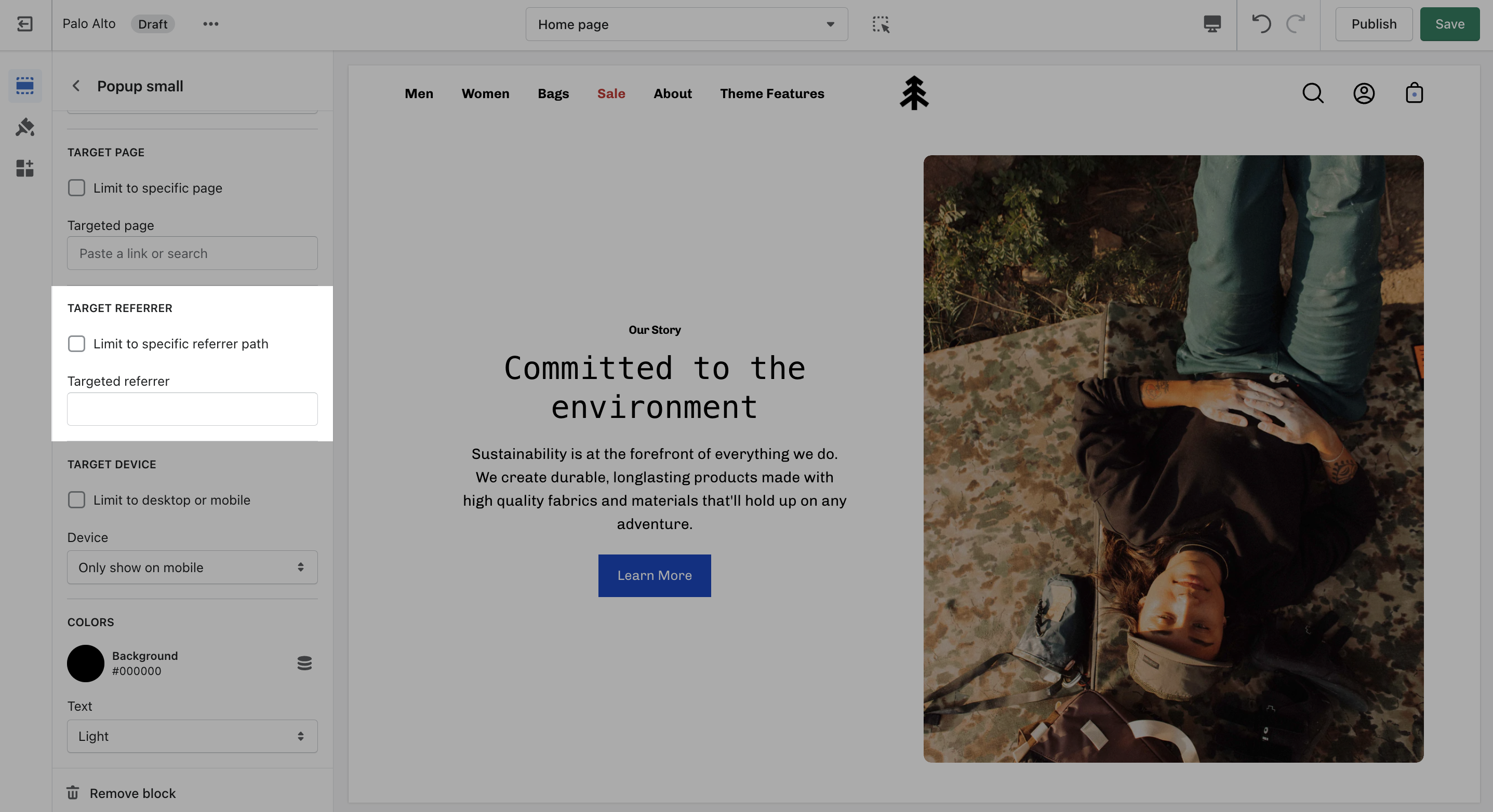 Target a specific audience by using Target Referrer. Your popup will only appear when the customer arrives at your site from a certain path or location.