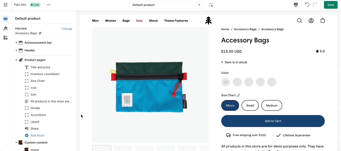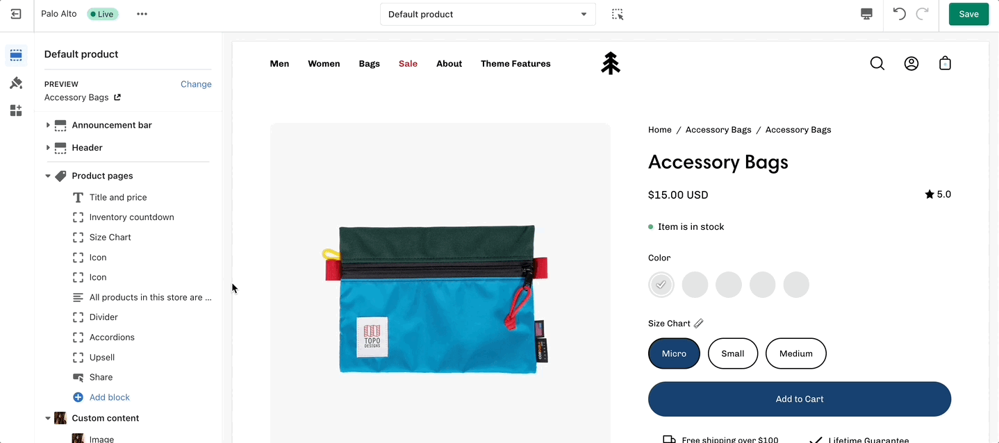 After the new template is created, you will find it under the same Product tab in the drop-down menu. You will be able to set up each product page individually and create truly unique pages using this method.