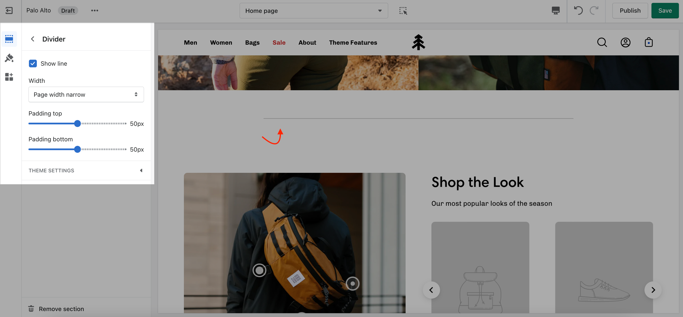The Palo Alto 'Product pages' section blocks help you customize the primary or core content for your product pages and product templates. Adding sections further enhances your merchandising.