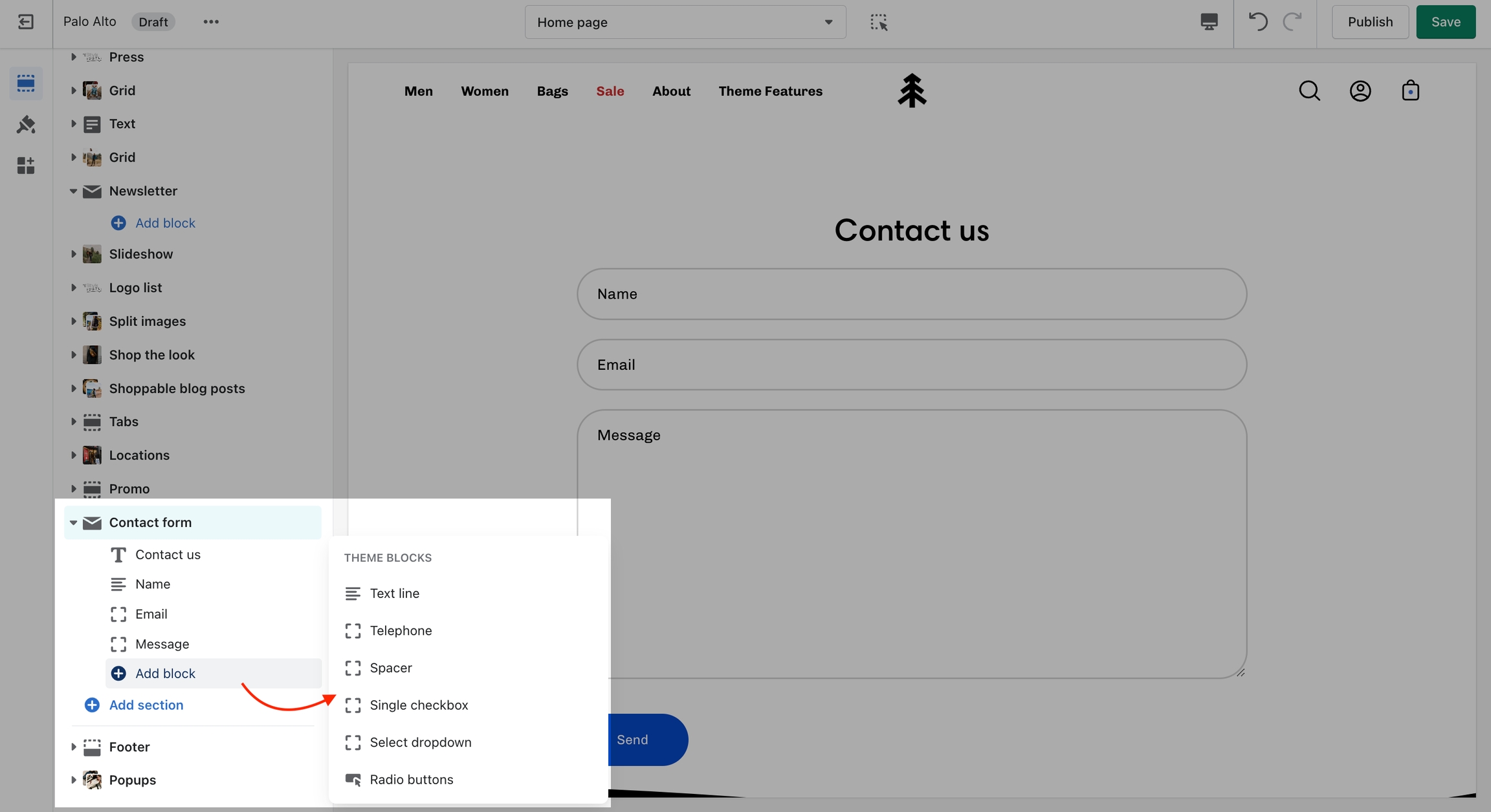 Customize the form by adding and removing blocks.