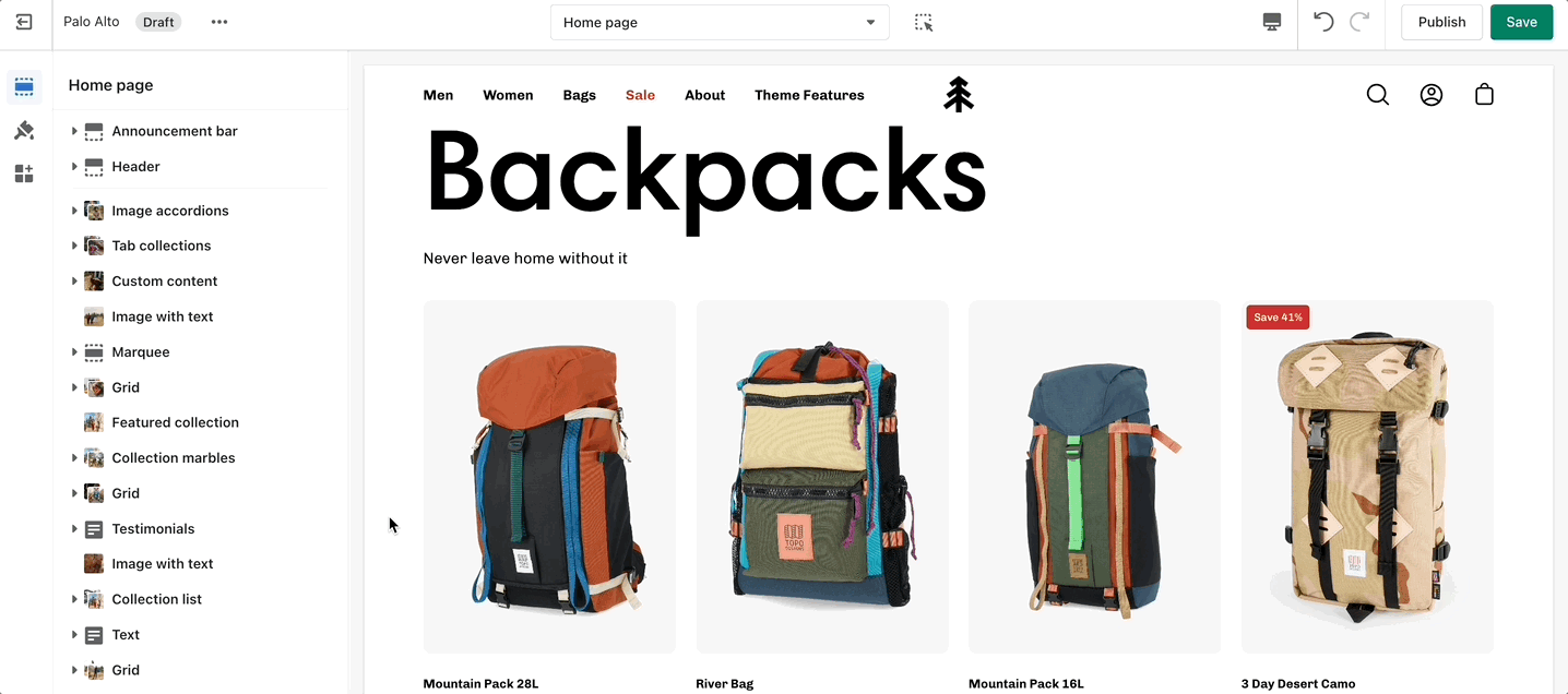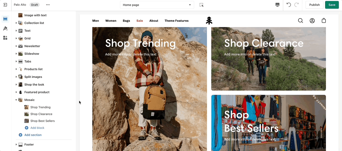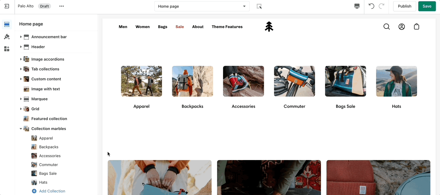 Create a unique view to showcase your products and collections.