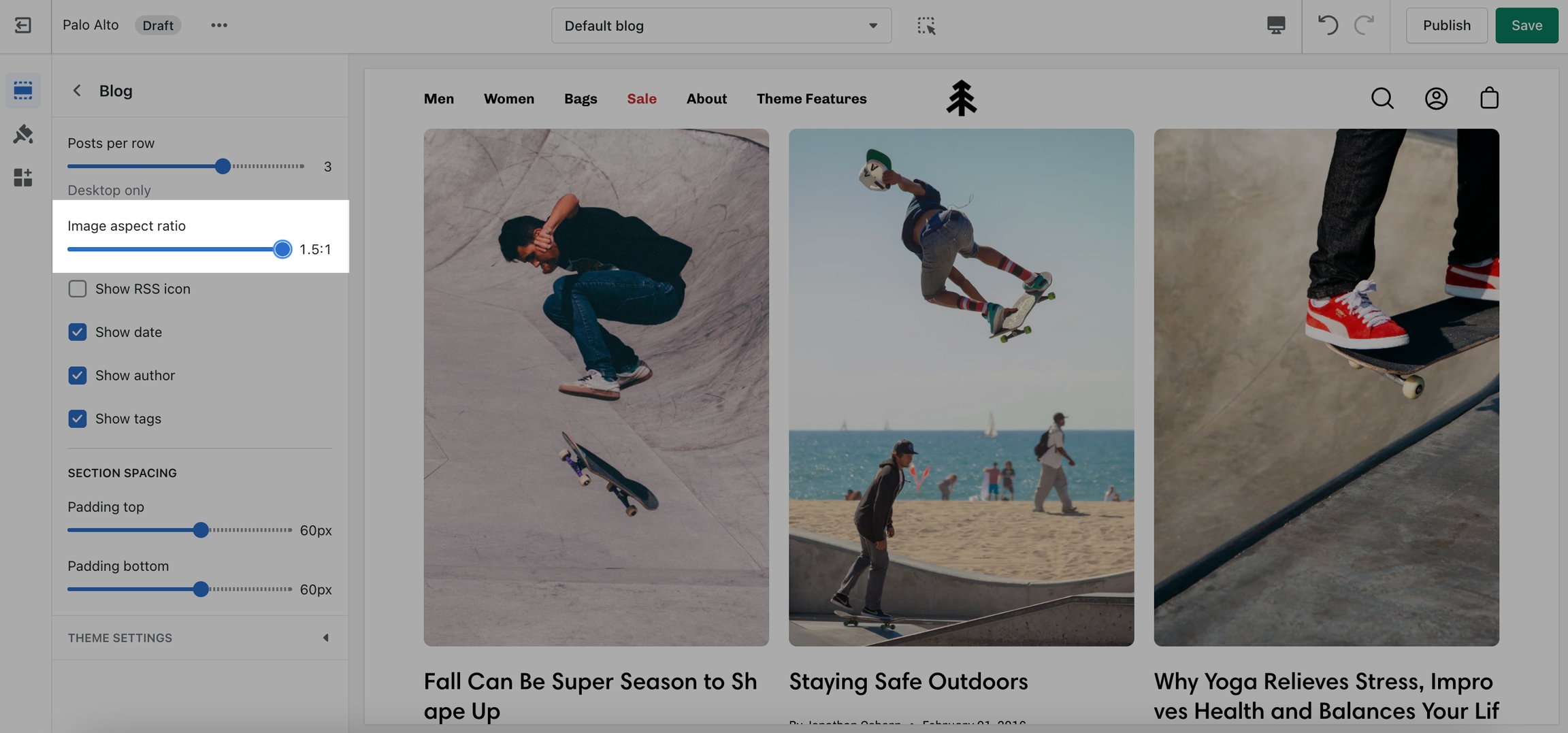 Palo Alto provides an option to adjust image aspect ratios for the blog page.