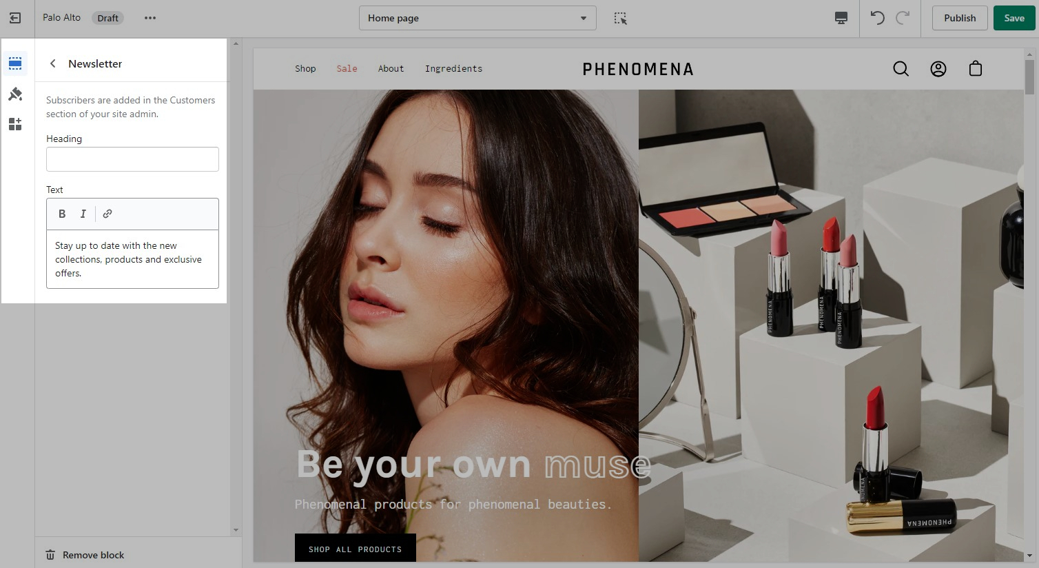Note: The newsletter blocks in Palo Alto can only create a new Customer in your Shopify admin with the qualities of a Subscriber (agreed to receive marketing emails).