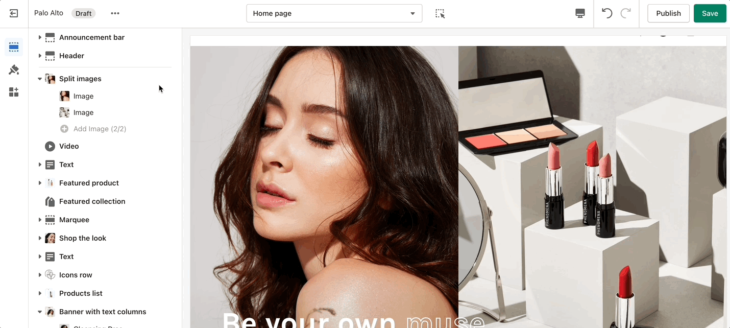 Create a split view to showcase your products or product images.