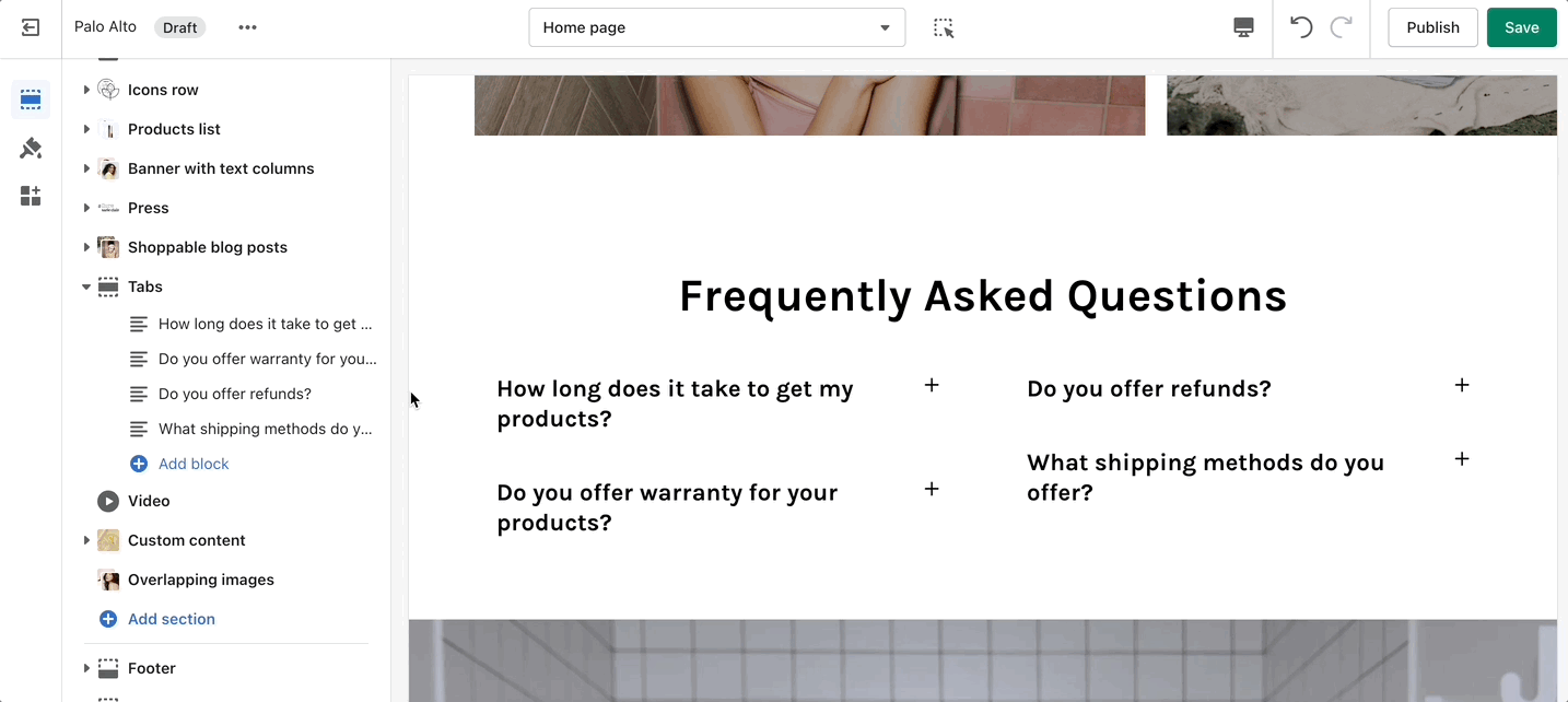 Palo Alto includes a 'Tabs' section to help you provide frequently asked questions. A place to promote your services, and brand strengths and also include product reviews.