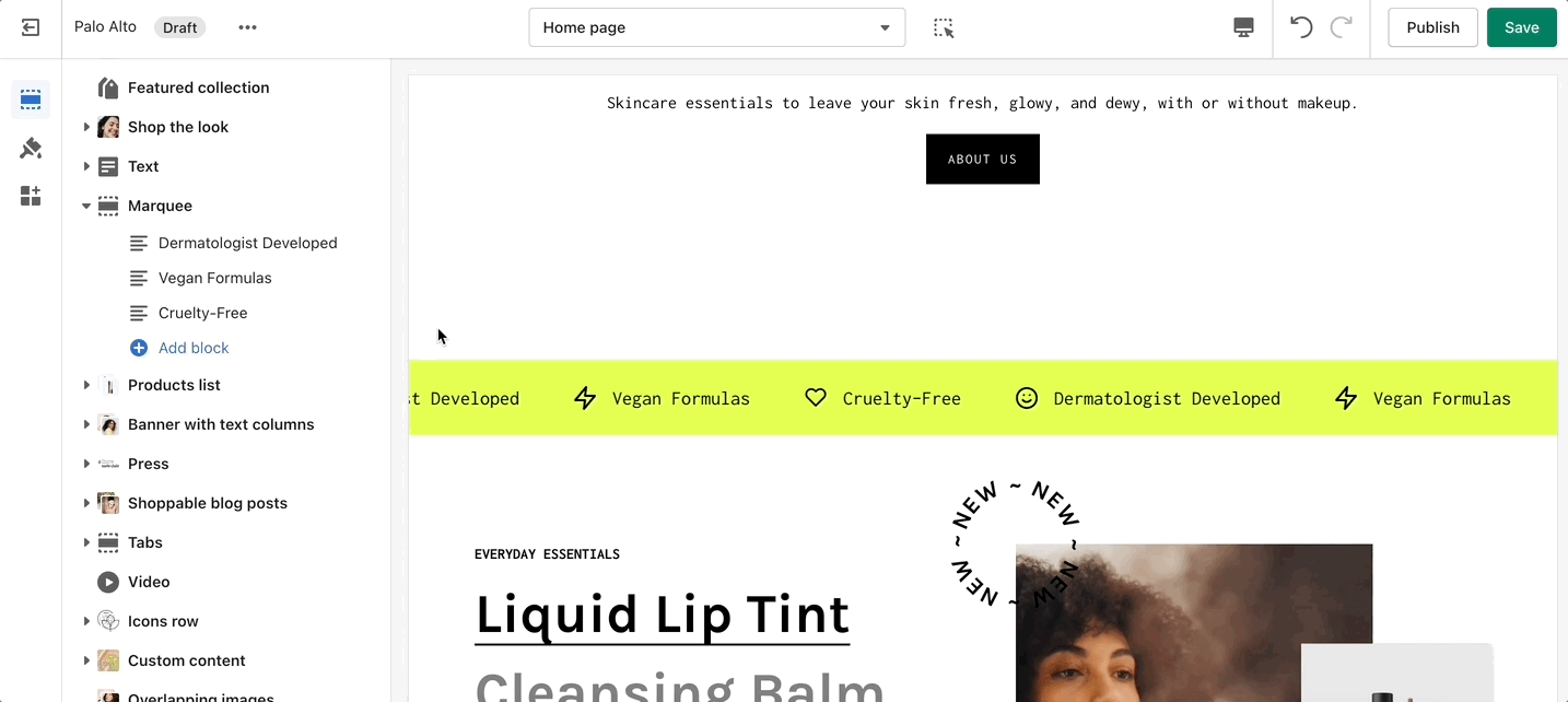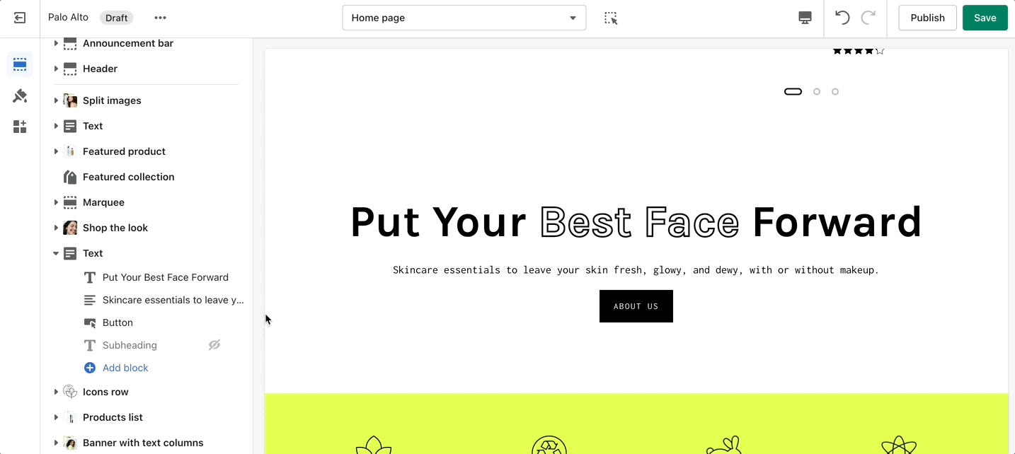 The 'Text' section allows for a ton of customization. Use this section to tell a story to your customers.