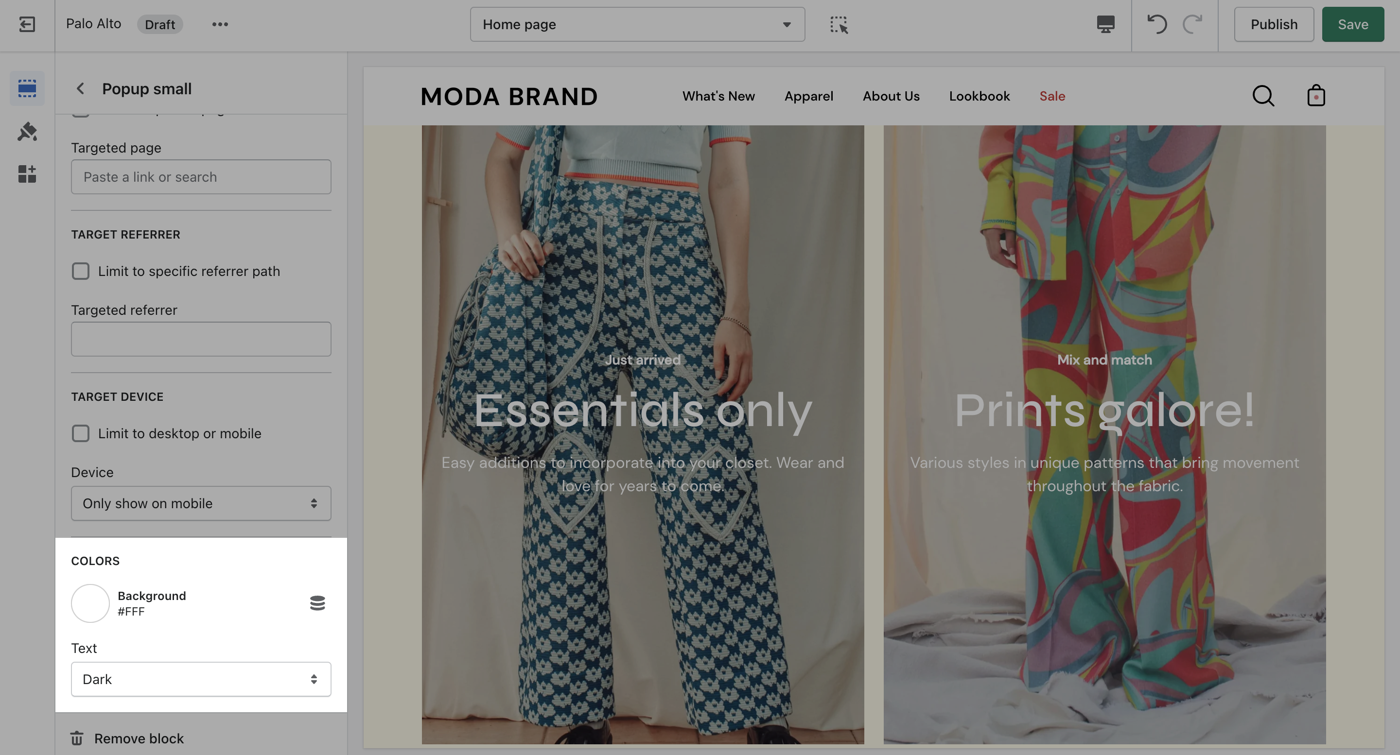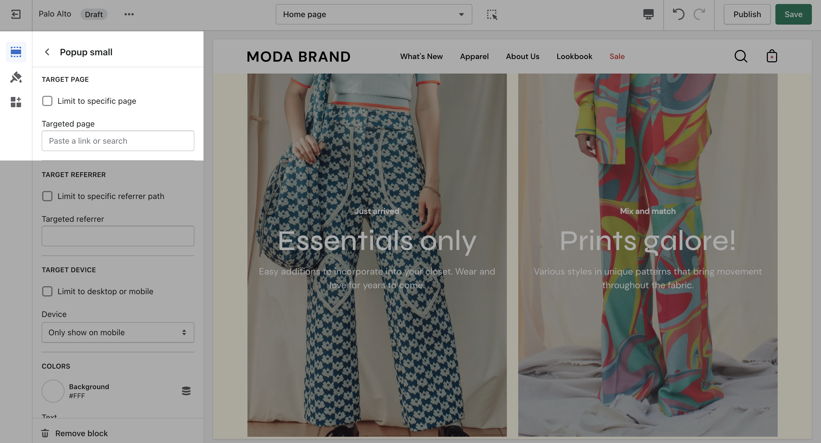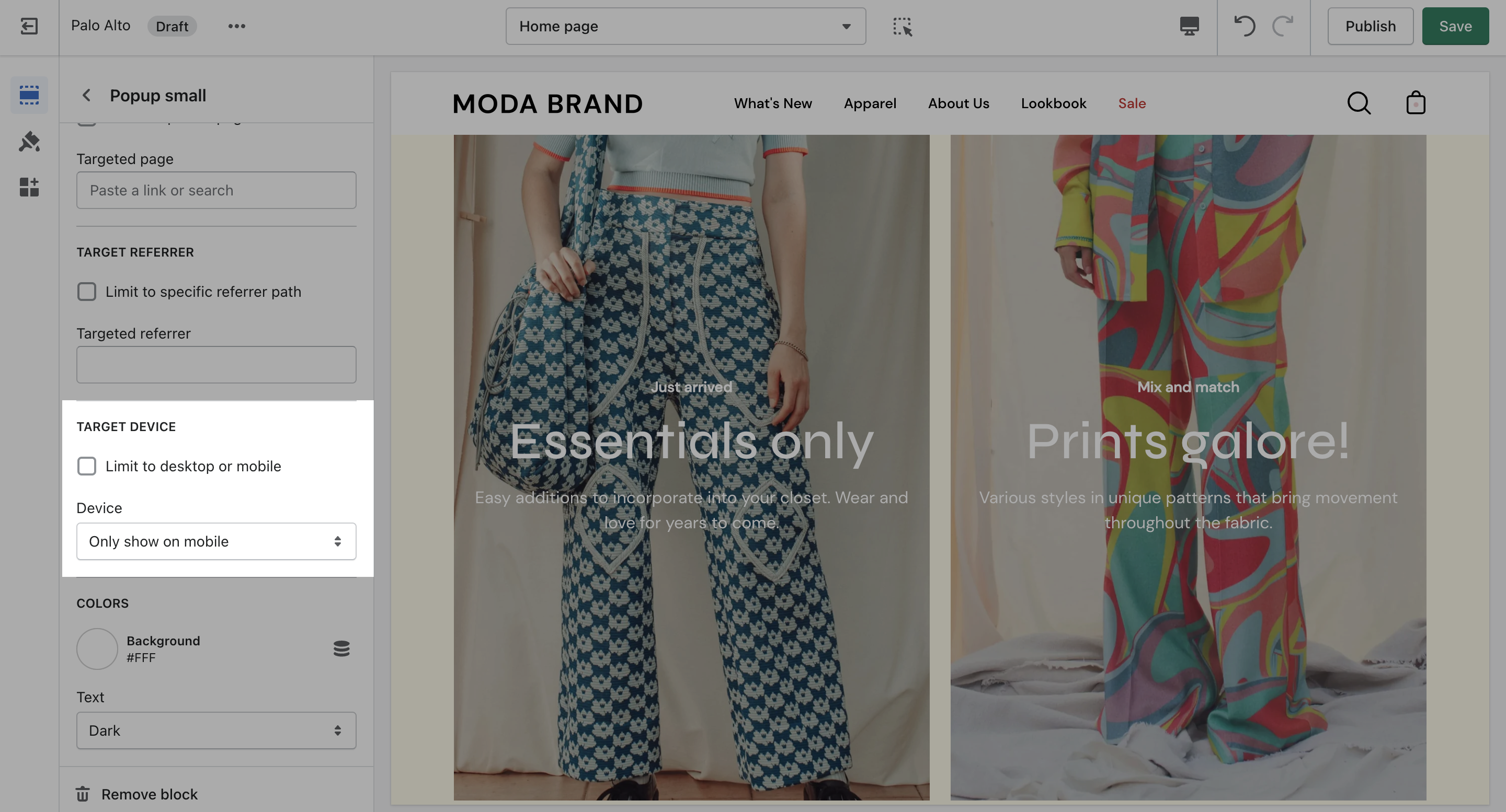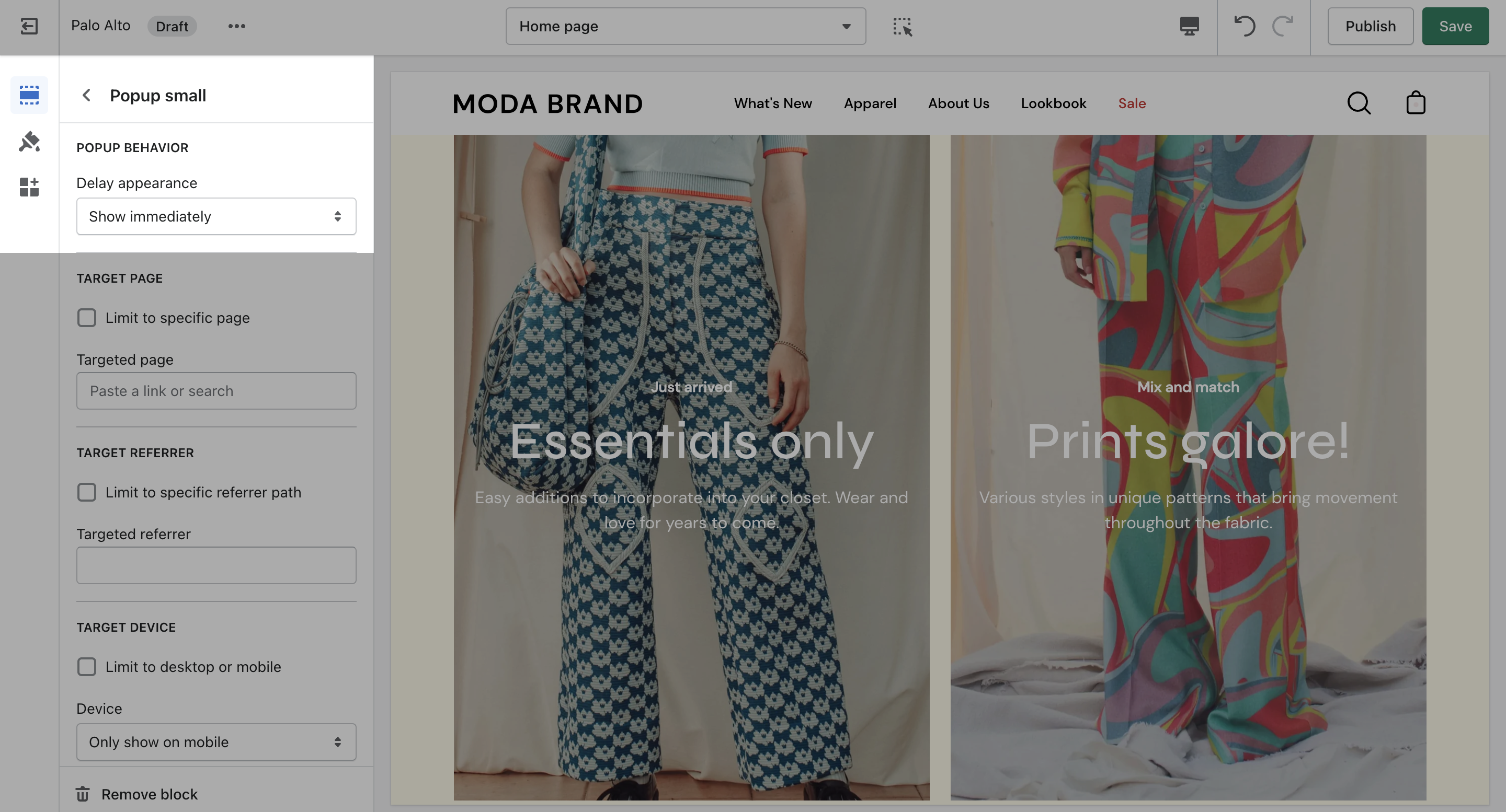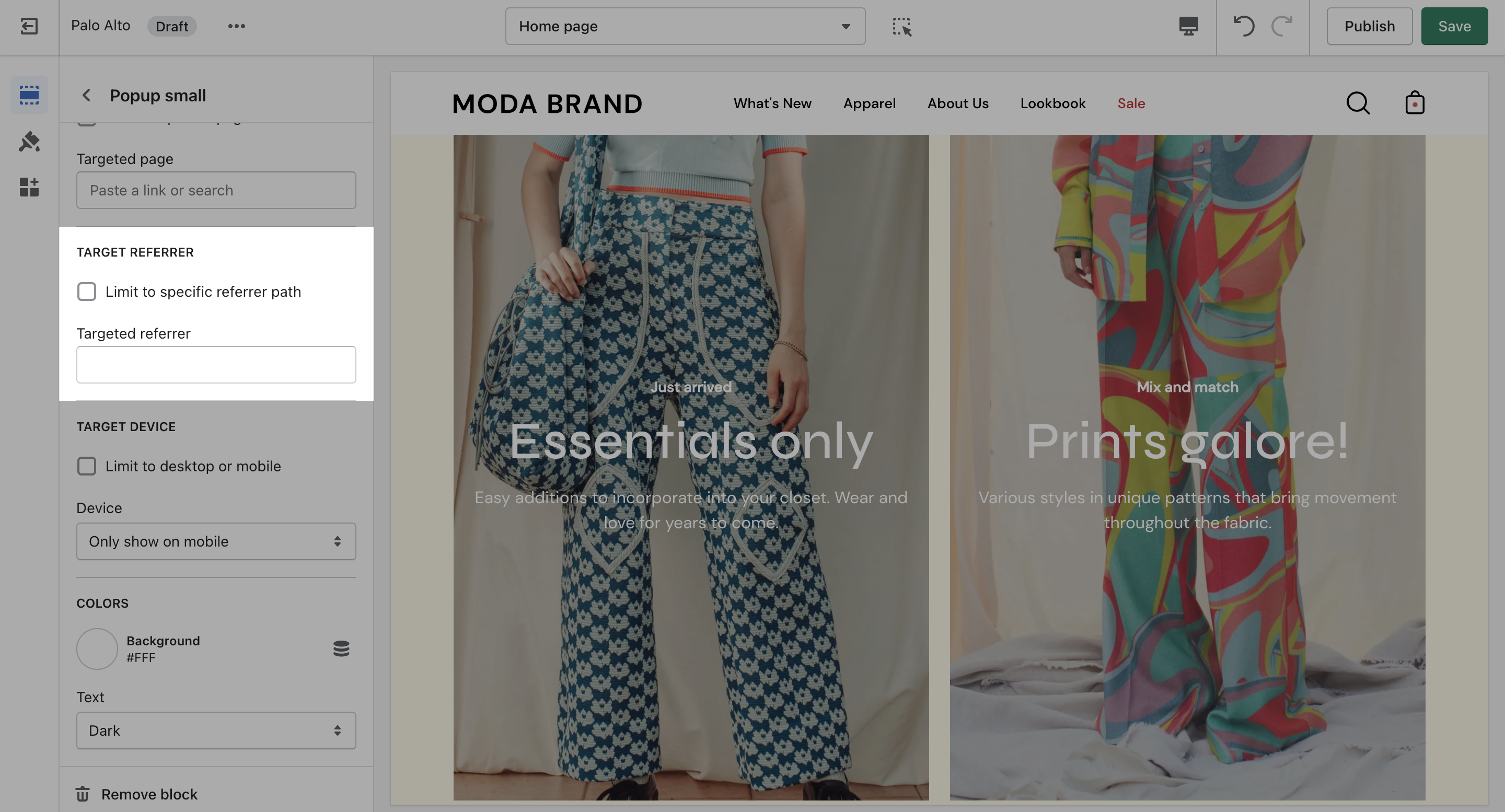 Target a specific audience by using Target Referrer. Your popup will only appear when the customer arrives at your site from a certain path or location.