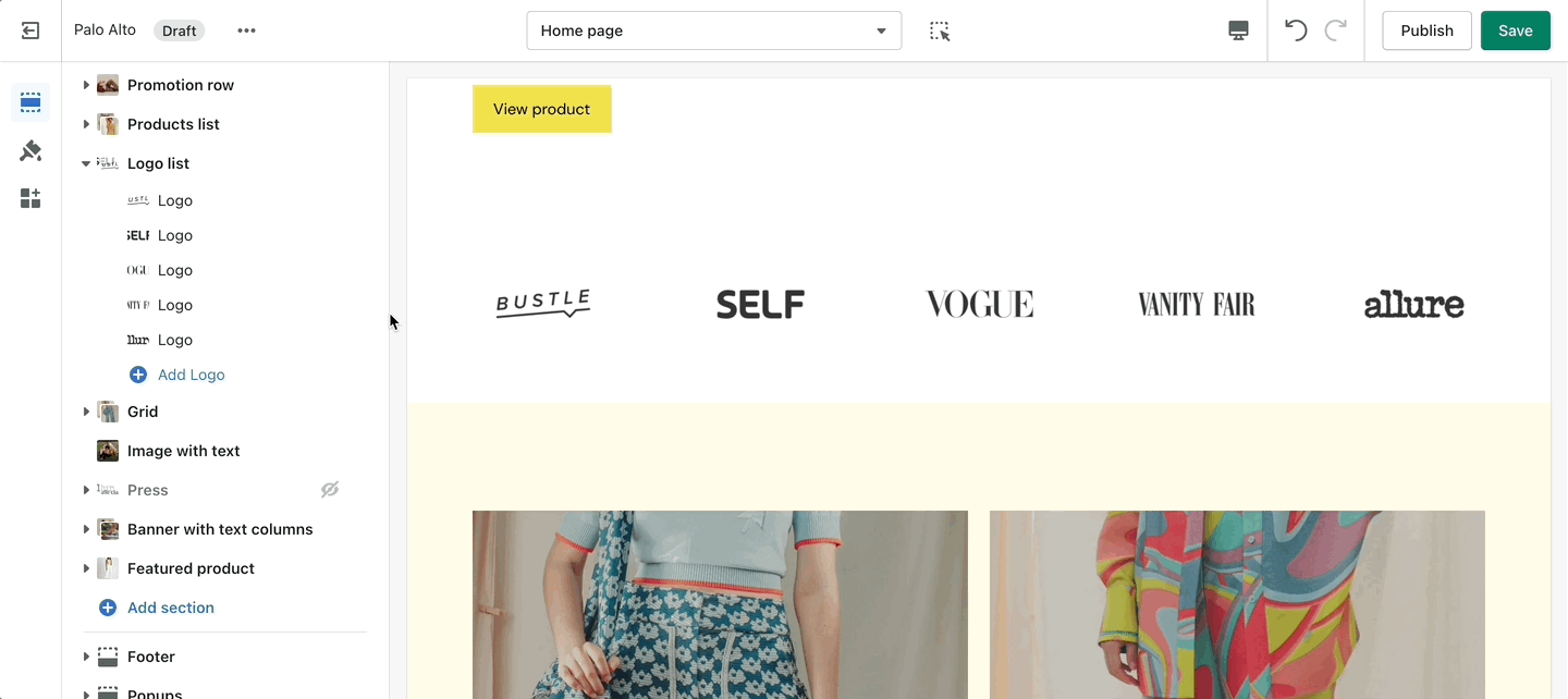 'Logo List' creates a carousel view that you can use to showcase your brand or partnered brand logos.