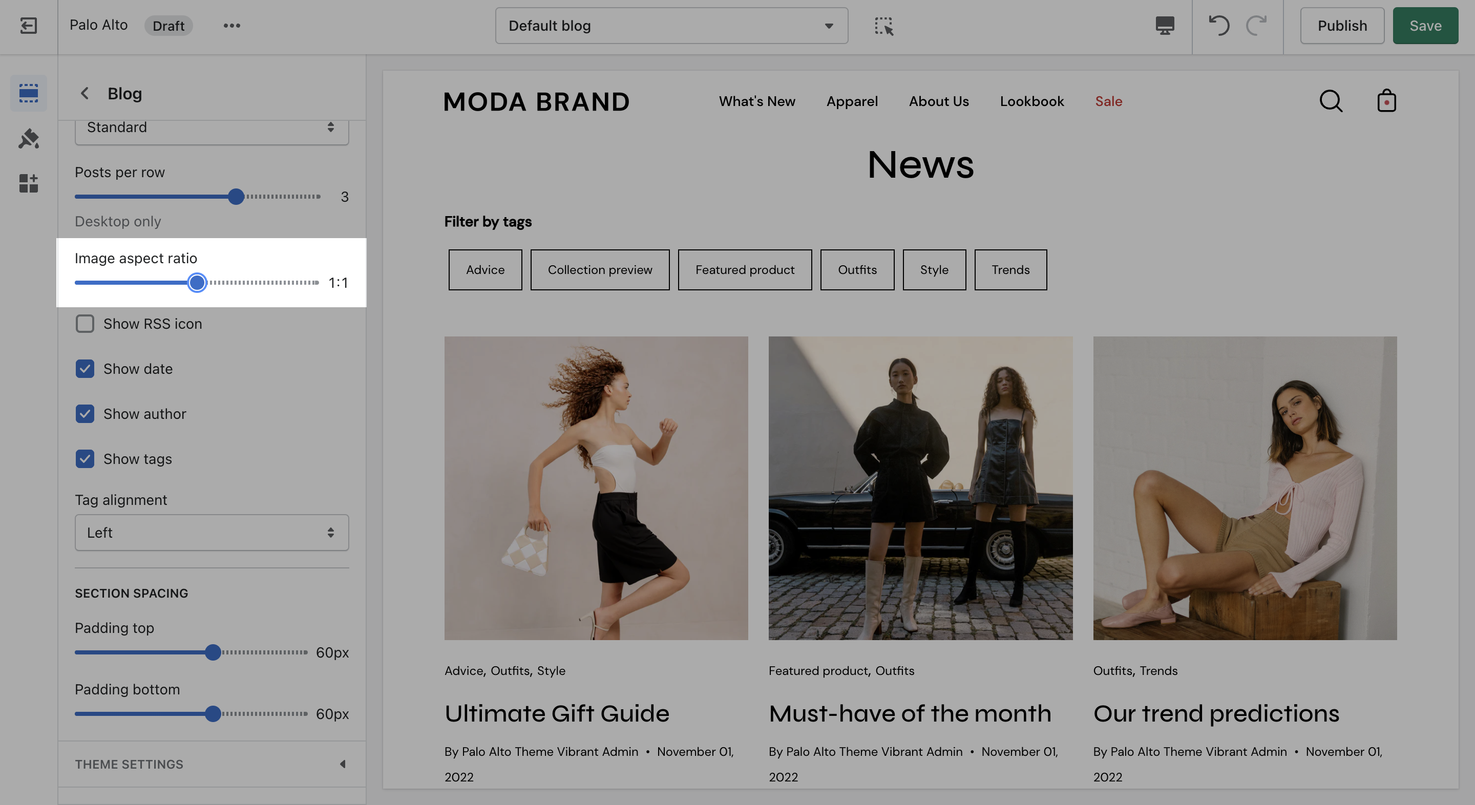 Palo Alto provides an option to adjust image aspect ratios for the blog page.