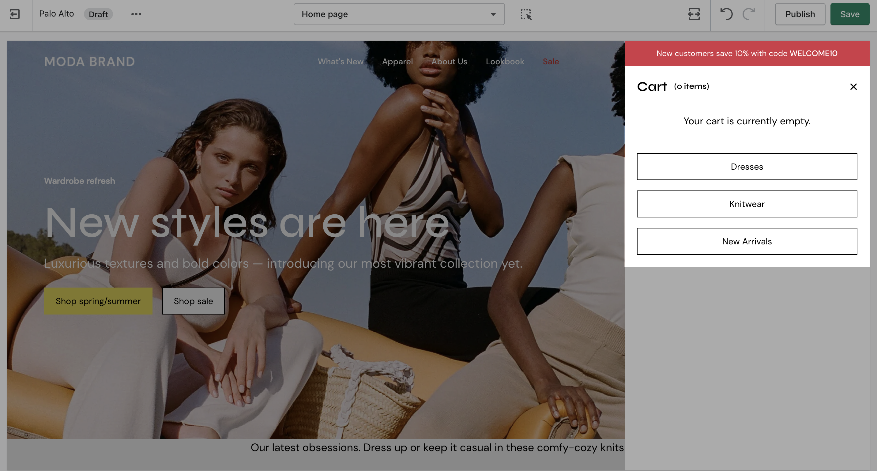 In Palo Alto, you have the option to show up to three upsell buttons when the cart is empty.
