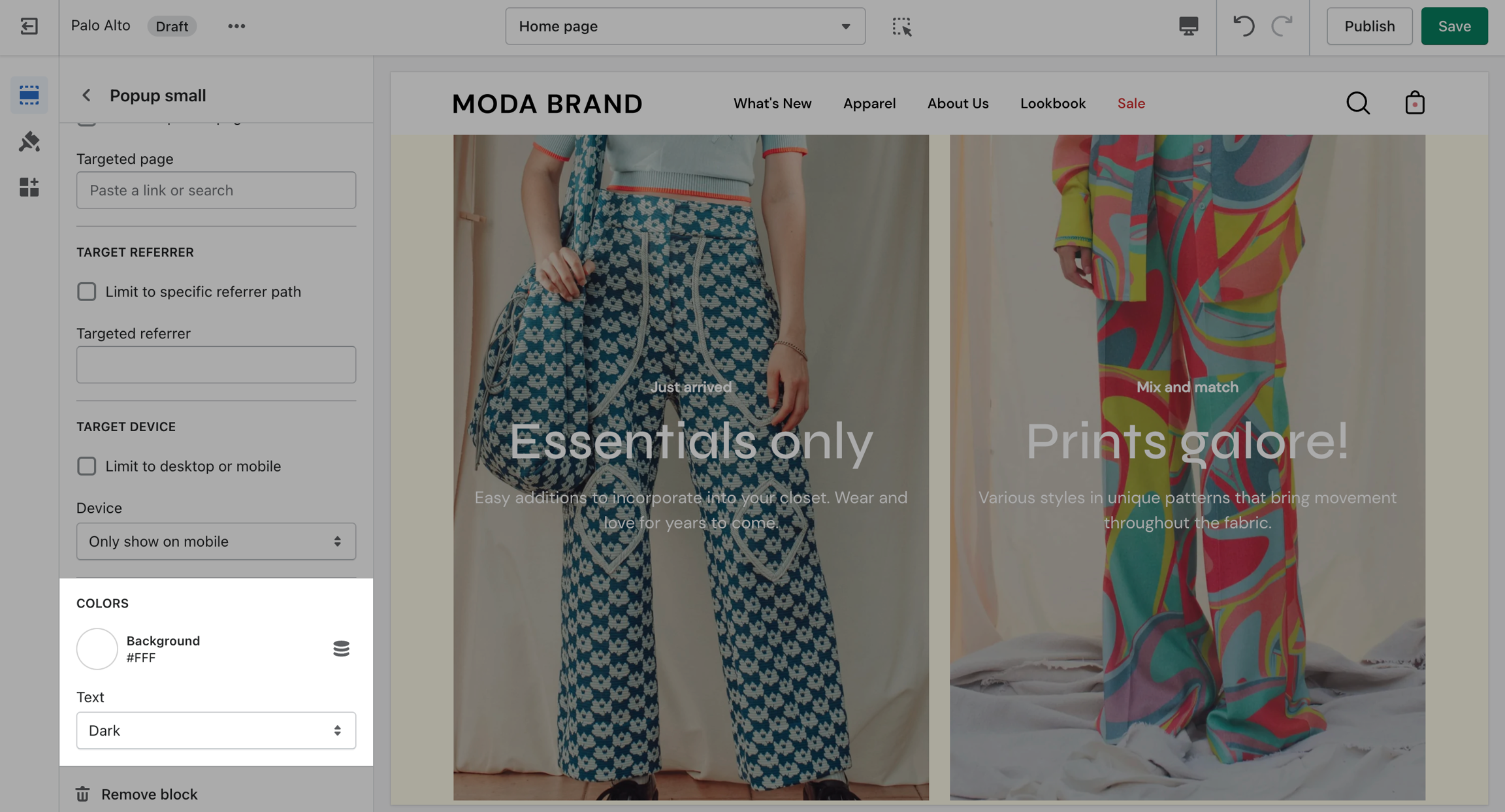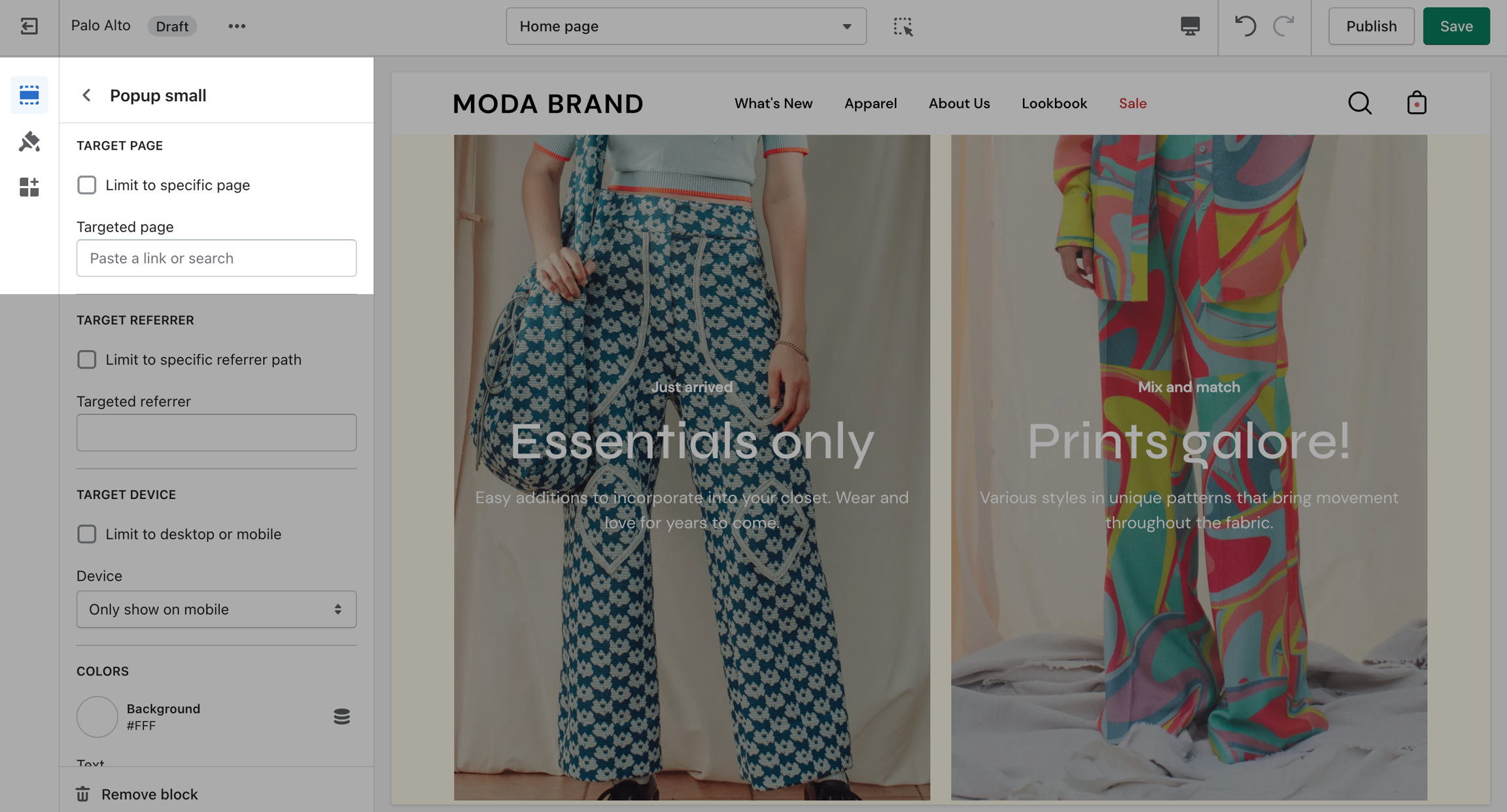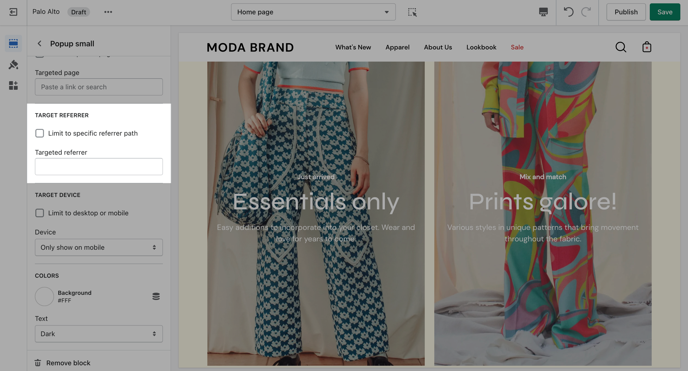 Target a specific audience by using Target Referrer. Your popup will only appear when the customer arrives at your site from a certain path or location.