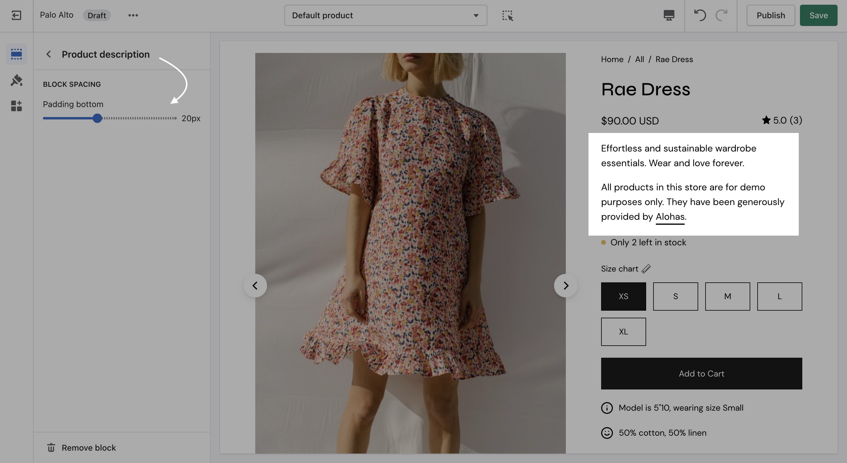 Show the product description text on the product pages.