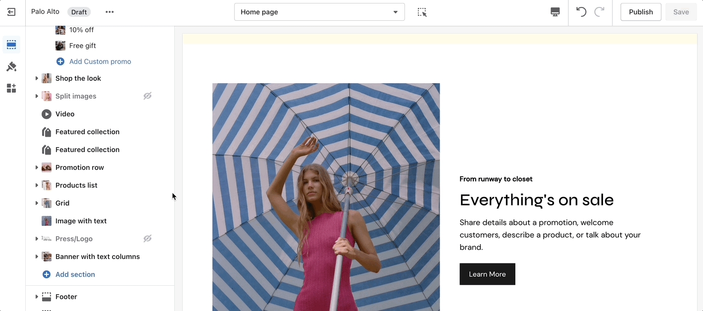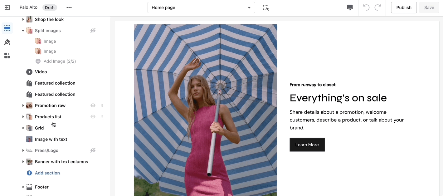 Set up your image, text, positions, and buttons by using these section settings.