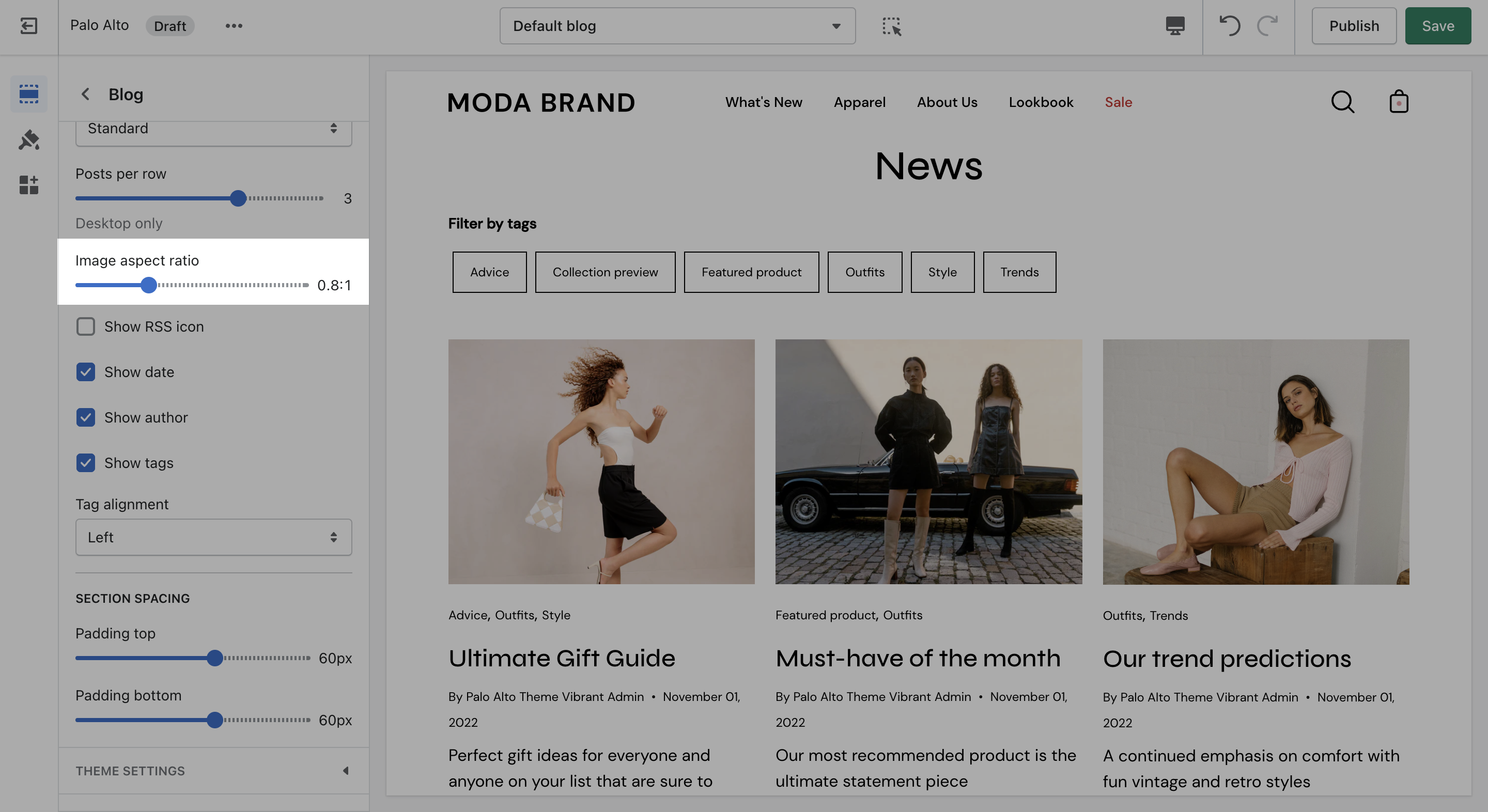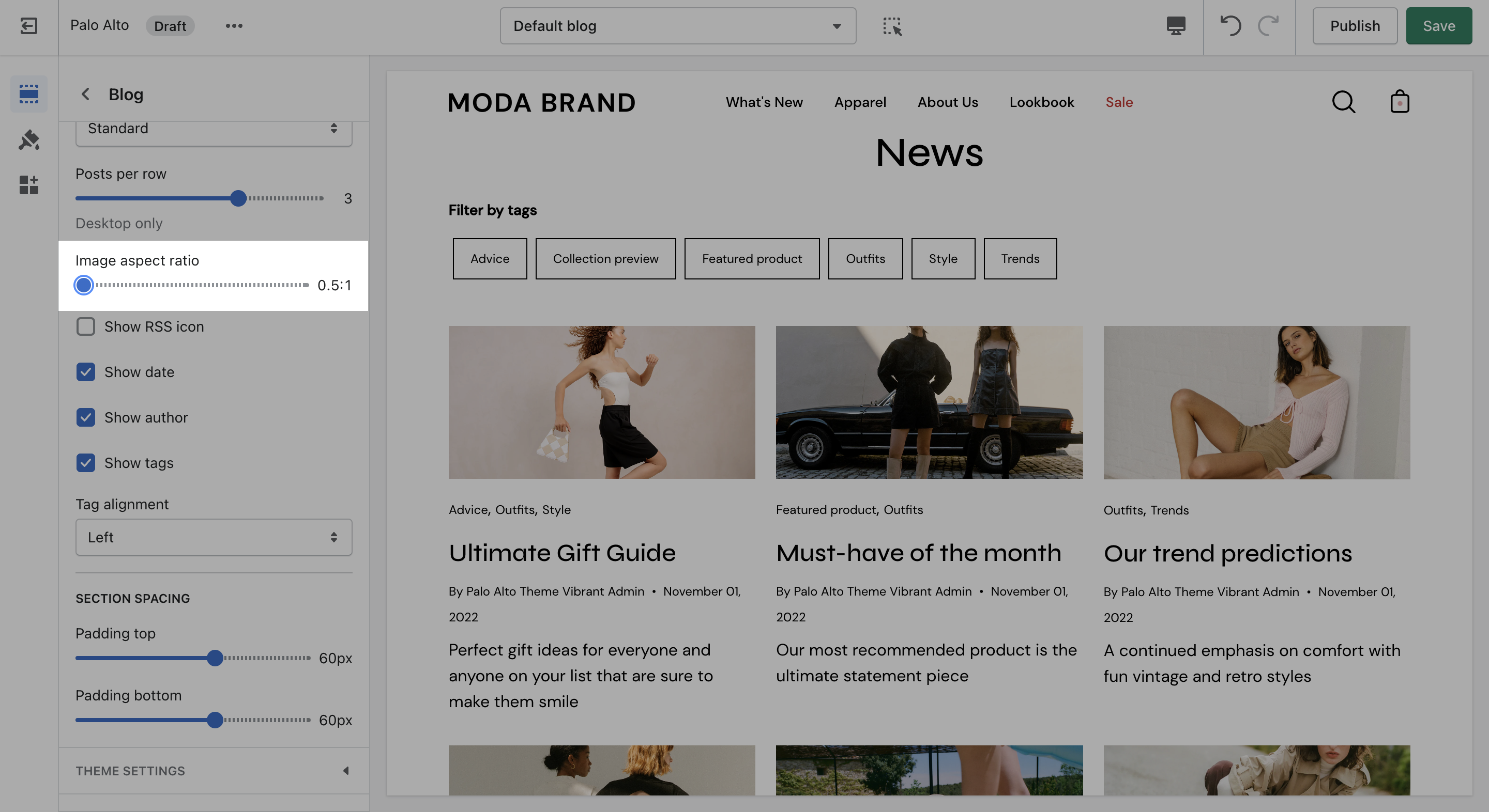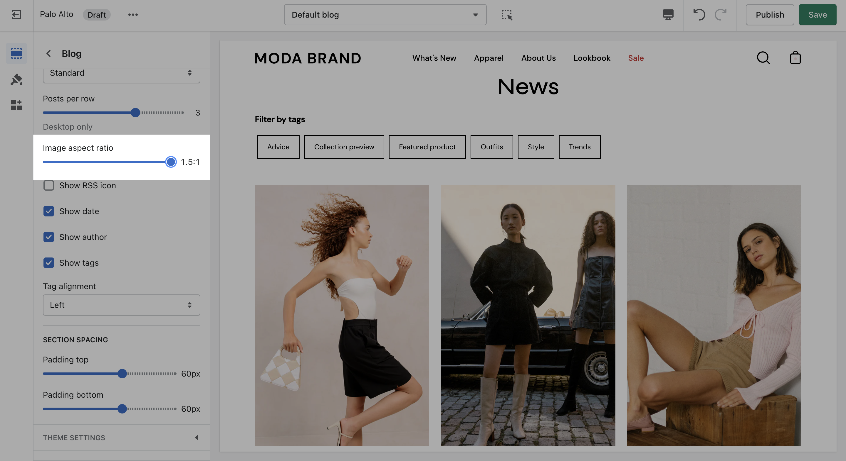 Palo Alto provides an option to adjust image aspect ratios for the blog page.