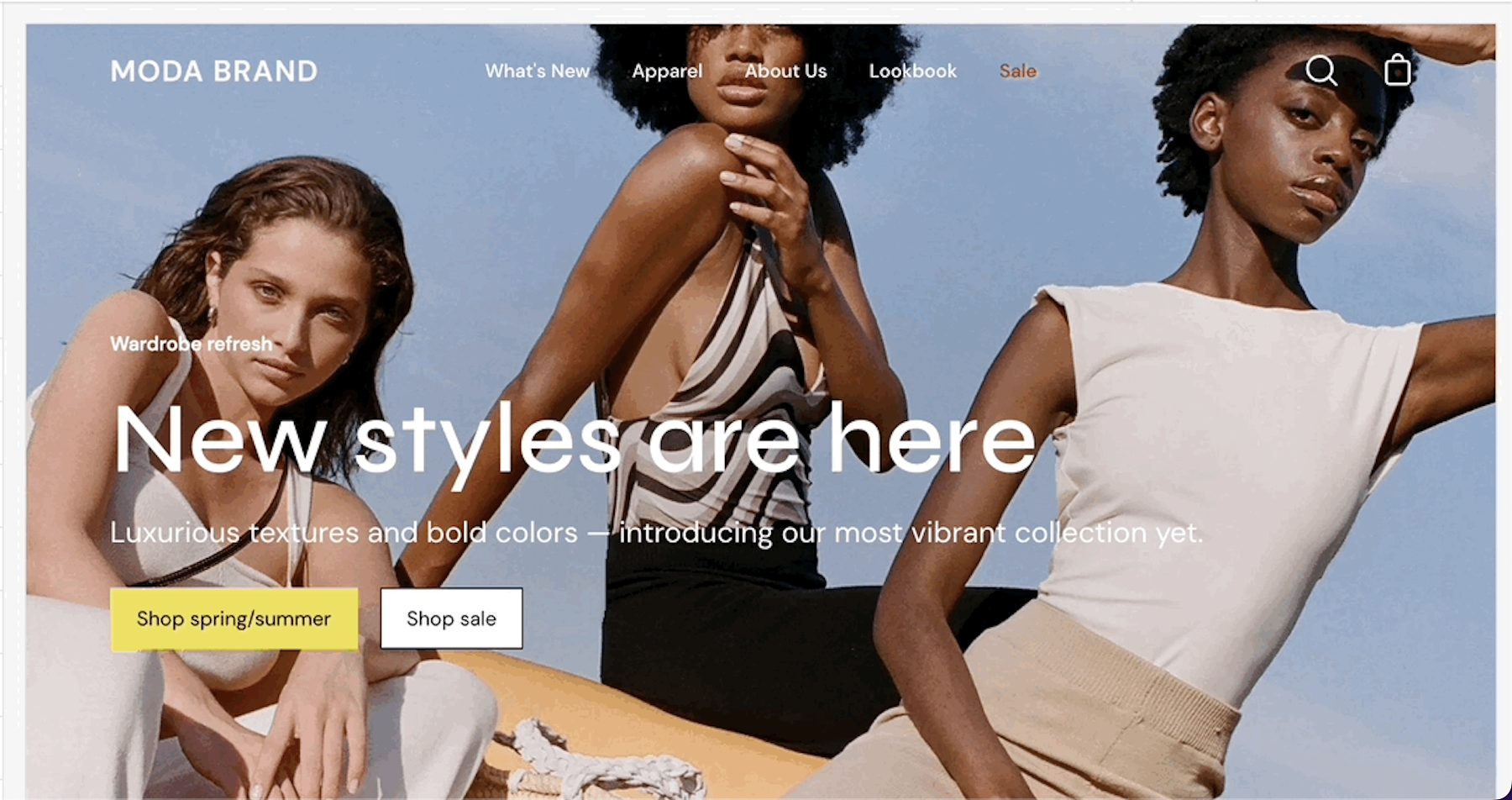 <table data-view="cards"><thead><tr><th></th><th></th><th data-hidden data-card-target data-type="content-ref"></th><th data-hidden data-card-cover data-type="files"></th></tr></thead><tbody><tr><td><strong>Colors</strong></td><td>Set three or four main colors that will represent your brand.</td><td><a href="introduction/colors">colors</a></td><td><a href="https://content.gitbook.com/content/euPOcbLh1oxKLt05WyGH/blobs/2mArxqzqF5WRslHspdB3/colors.png">colors.png</a></td></tr><tr><td><strong>Typography</strong></td><td>Set two main fonts.</td><td><a href="introduction/typography">typography</a></td><td><a href="https://content.gitbook.com/content/euPOcbLh1oxKLt05WyGH/blobs/PdLZJNoYSpie63yOcI7Q/typography.png">typography.png</a></td></tr><tr><td><strong>Appearance</strong></td><td>Miscellaneous settings that can affect small details in your store.</td><td><a href="introduction/appearance">appearance</a></td><td><a href="https://content.gitbook.com/content/euPOcbLh1oxKLt05WyGH/blobs/Ey2dkfn32JtgYjpxufcJ/appearance.png">appearance.png</a></td></tr><tr><td><strong>Product Grid</strong></td><td>Make the best fit for your images.</td><td><a href="introduction/product-grid">product-grid</a></td><td><a href="https://content.gitbook.com/content/euPOcbLh1oxKLt05WyGH/blobs/H2zB4rCJe0dNVxR3morQ/product-grid.png">product-grid.png</a></td></tr><tr><td><strong>Quick shop</strong></td><td>Add products to the cart without leaving the current page.</td><td><a href="introduction/quick-shop">quick-shop</a></td><td><a href="https://content.gitbook.com/content/euPOcbLh1oxKLt05WyGH/blobs/kAB7kVp2UmfLV5emrKWT/quick-shop.png">quick-shop.png</a></td></tr><tr><td><strong>Cart</strong></td><td>Show up to three upsell buttons when the cart is empty.</td><td><a href="introduction/cart">cart</a></td><td><a href="https://content.gitbook.com/content/euPOcbLh1oxKLt05WyGH/blobs/xt9792VgwFvpM3N2lKFC/cart.png">cart.png</a></td></tr><tr><td><strong>Loading icon</strong></td><td>Keep brand consistency and display an animation as a loading indicator for your visitors.</td><td><a href="introduction/loading-icon">loading-icon</a></td><td><a href="https://content.gitbook.com/content/euPOcbLh1oxKLt05WyGH/blobs/Q0NJgm0JXzxAwKzECVbN/icon.png">icon.png</a></td></tr><tr><td><strong>Checkout</strong></td><td>Generated by Shopify.</td><td><a href="introduction/checkout">checkout</a></td><td><a href="https://content.gitbook.com/content/euPOcbLh1oxKLt05WyGH/blobs/JzG48ZwM4KnmMTUYslZQ/checkout.png">checkout.png</a></td></tr><tr><td><strong>Theme style</strong></td><td>Small sets of different settings.</td><td><a href="introduction/theme-style">theme-style</a></td><td><a href="https://content.gitbook.com/content/euPOcbLh1oxKLt05WyGH/blobs/yMioUKc2zsBPZj4Cqcfz/theme-style.png">theme-style.png</a></td></tr></tbody></table>