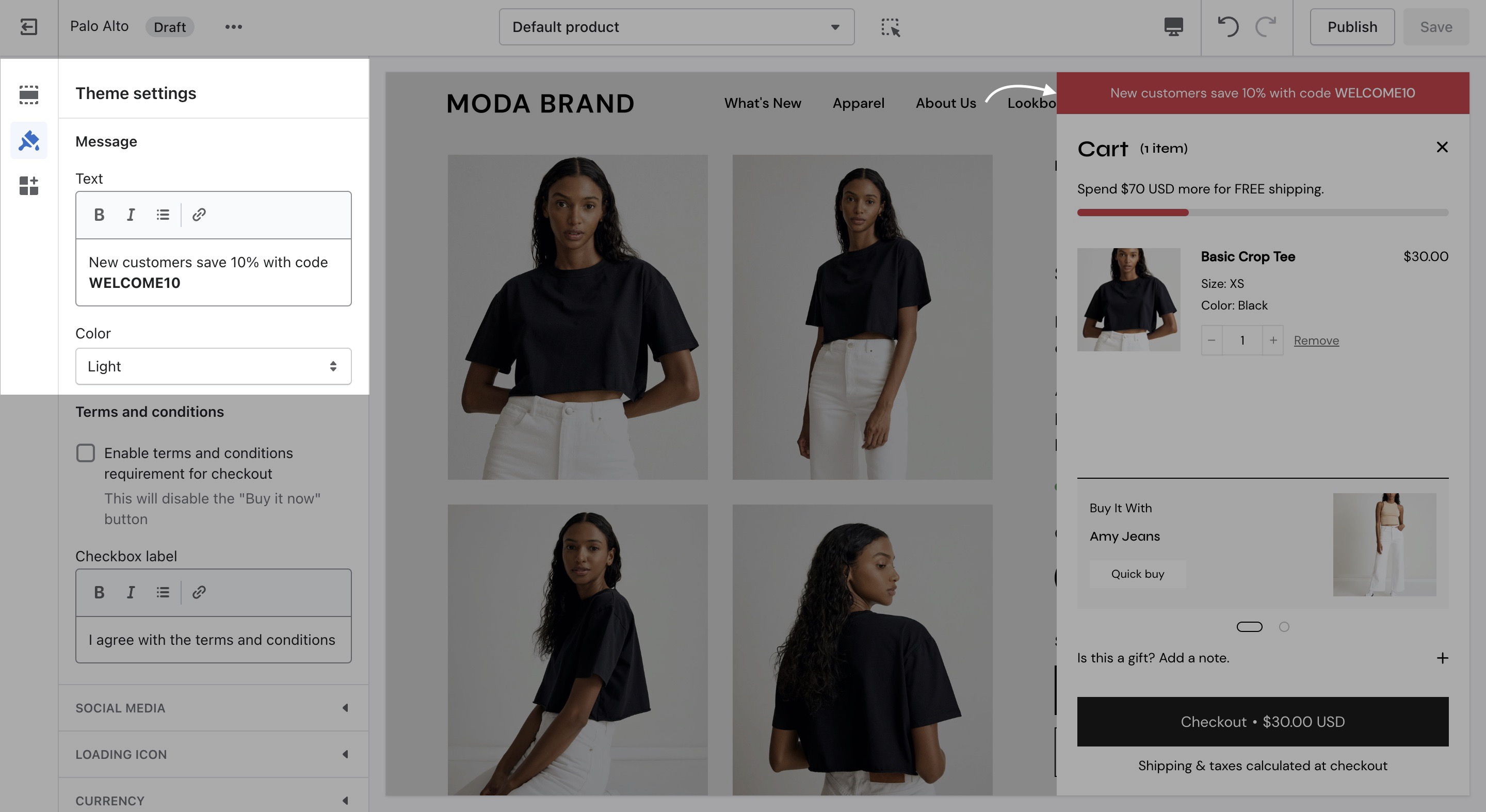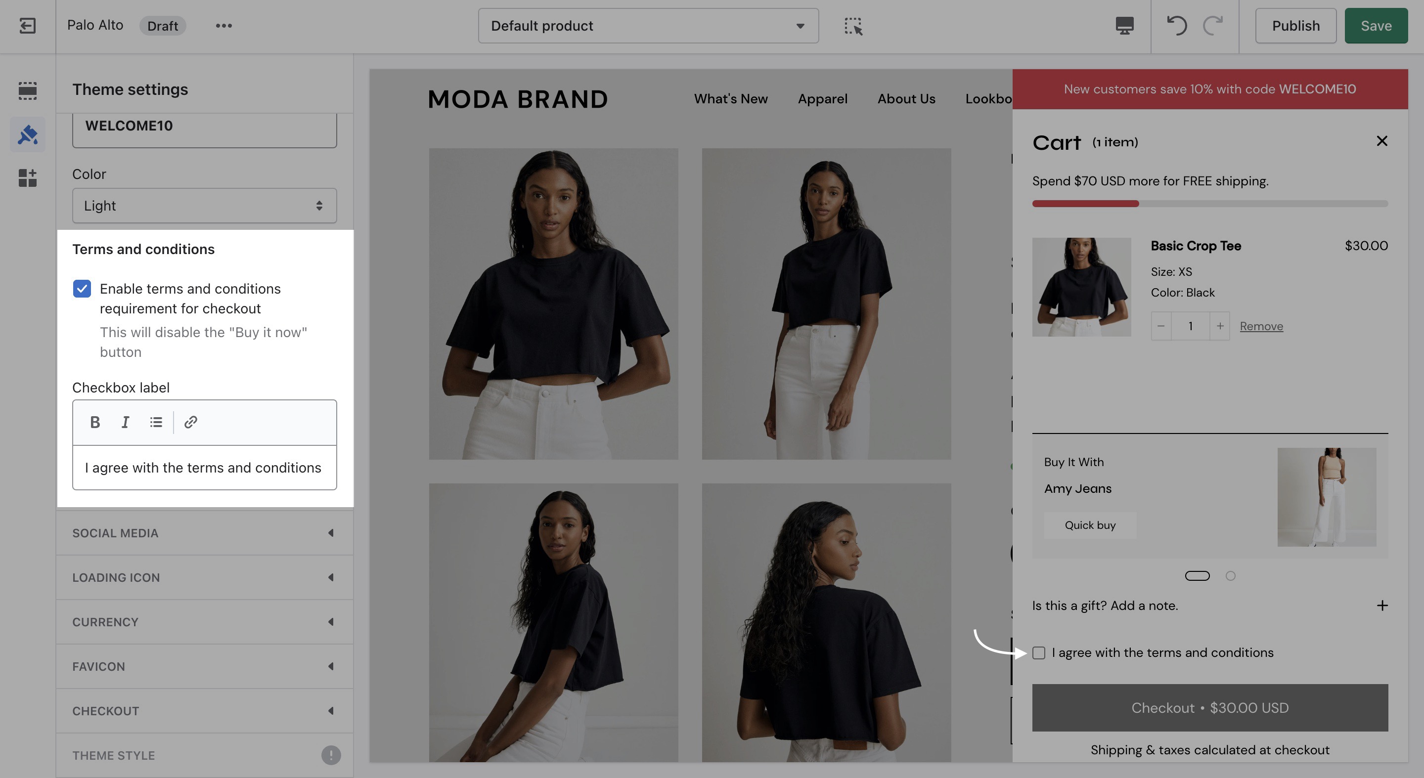 Lastly, you need to open up the Theme Editor and click on Theme Settings > Cart.