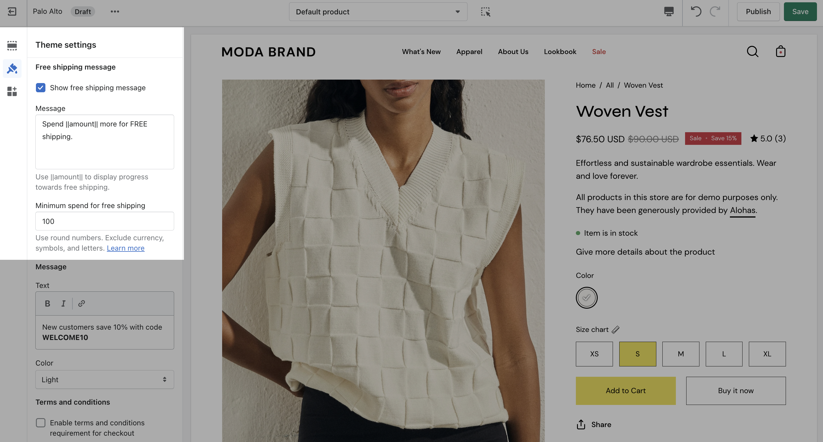 ## Free shipping message