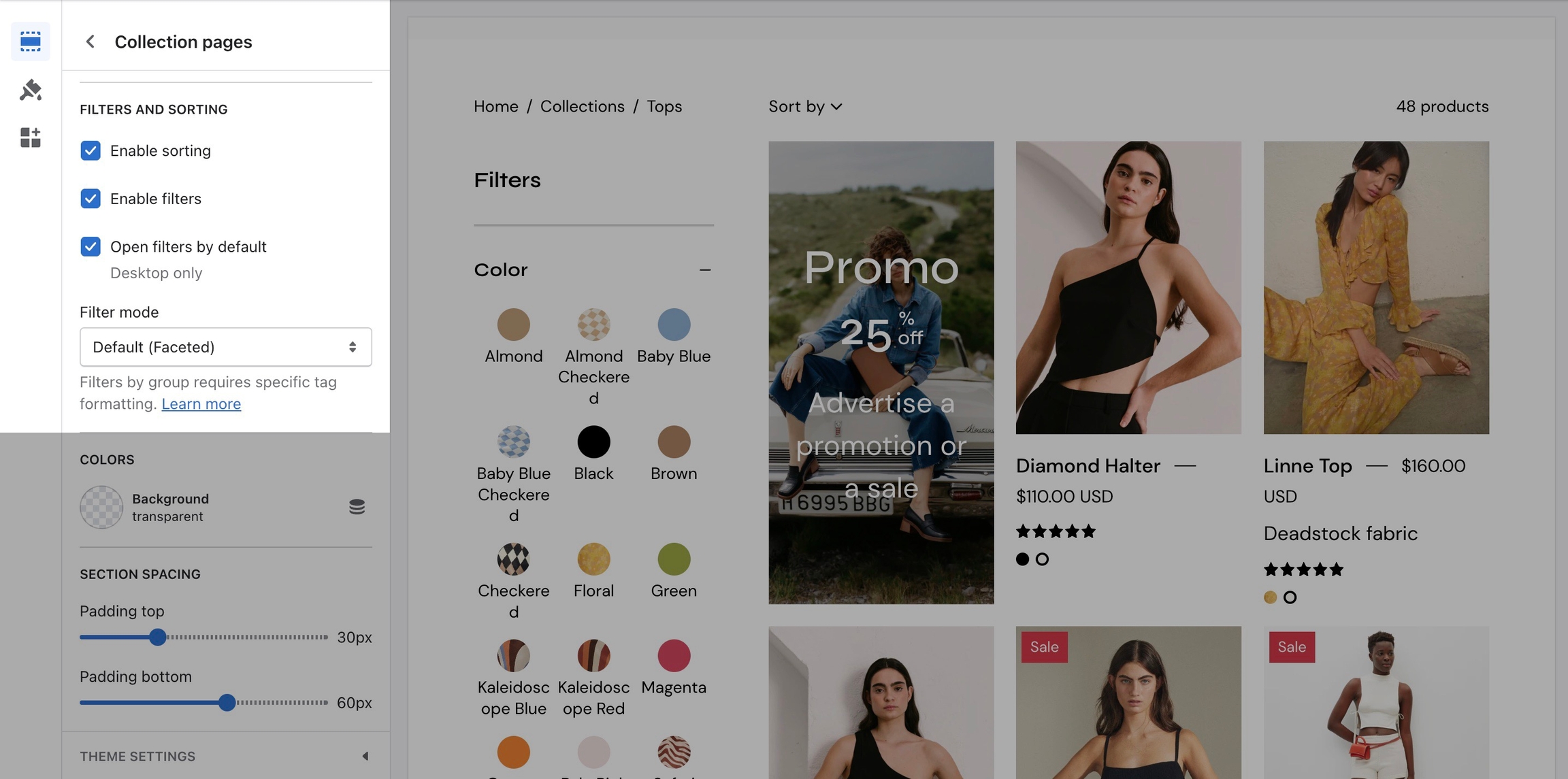 Filtering menus for your collection pages