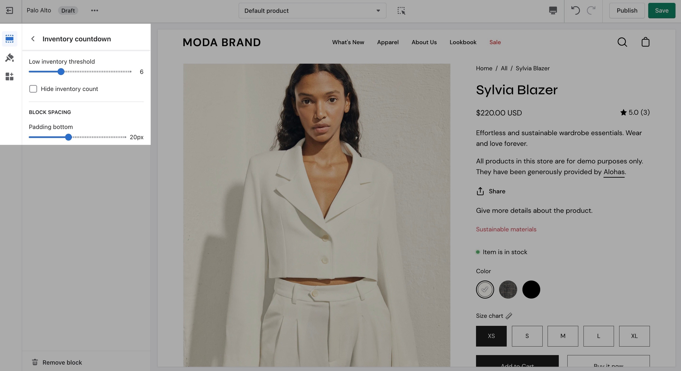 Display a notification about the current inventory quantity. If there are less than 10 products available this block will show how many are left.