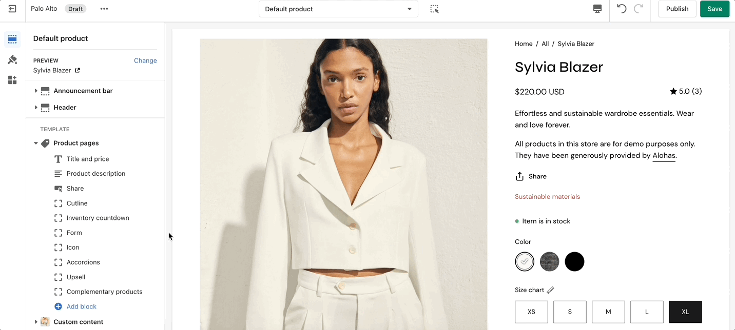 Displays a share icon for sharing the current product page on social media platforms.