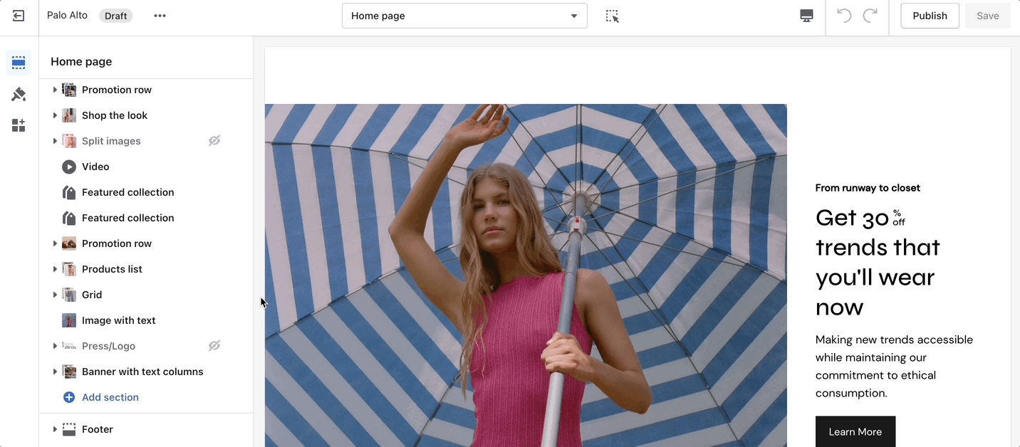 'Image with text' uses a solid color block to make the text stand out over the image. Use this more striking design to grab your customer's attention.