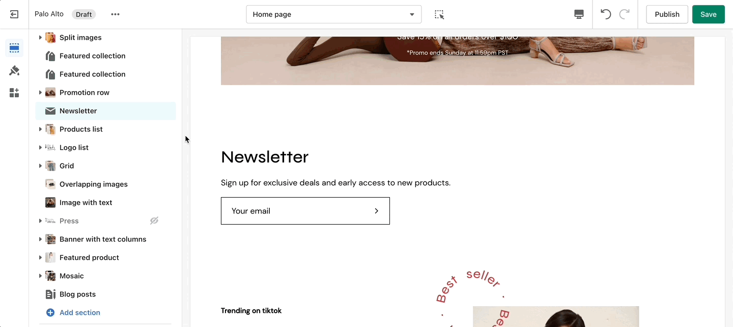 Out of the box, there aren't any blocks for this section. It solely relies on blocks from third-party mailing apps to create a link between the newsletter subscribers and the mailing lists.