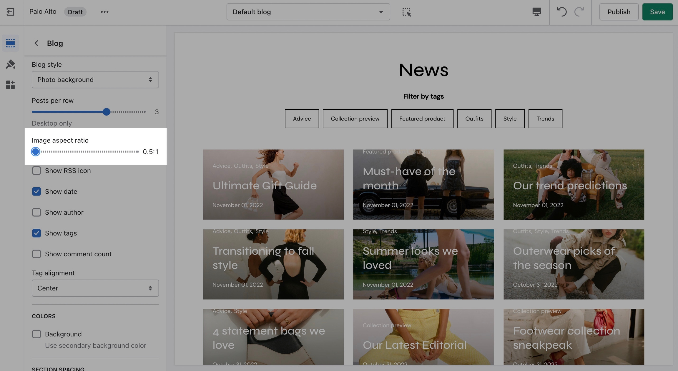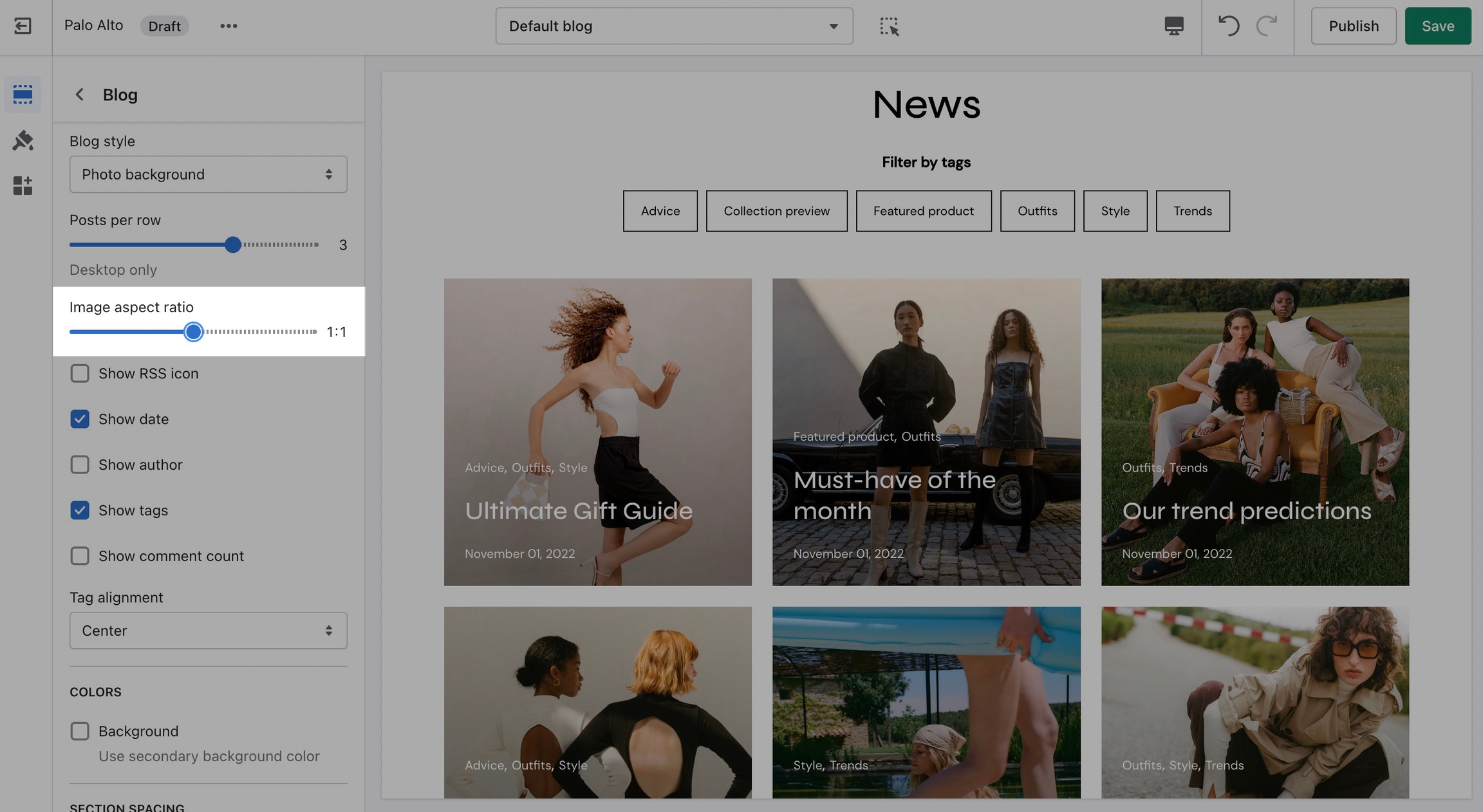 Palo Alto provides an option to adjust image aspect ratios for the blog page.