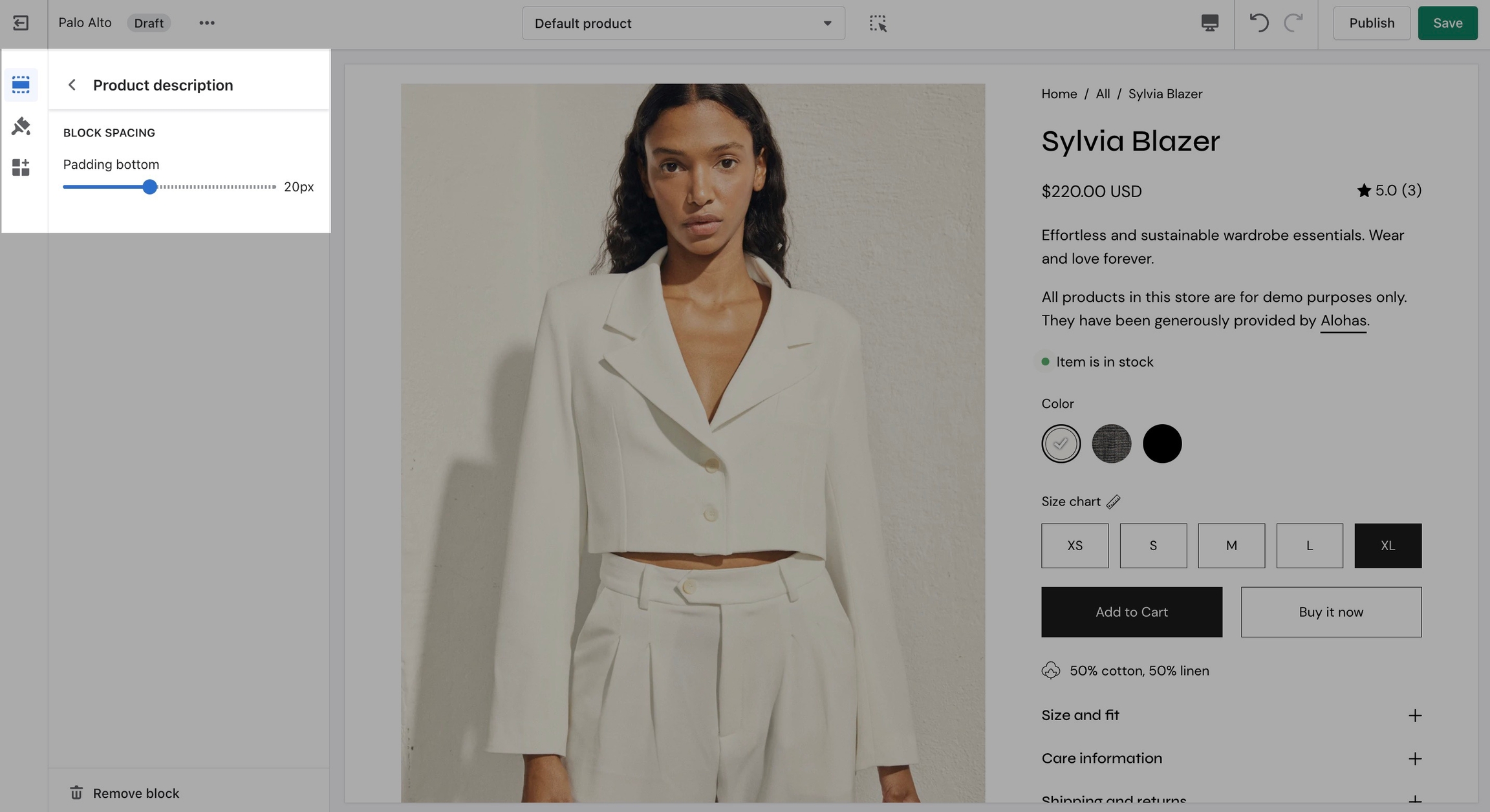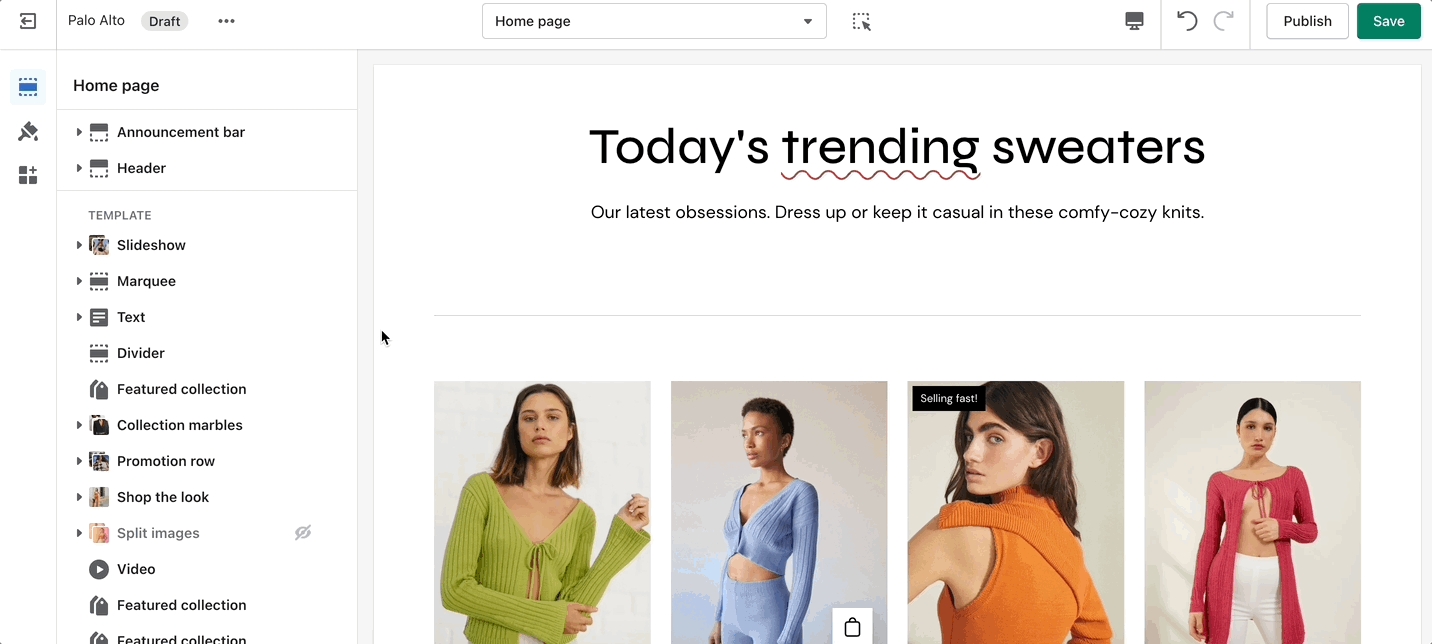 Introducing Palo Alto, a contemporary designed theme that gives you space to tell your story. Palo Alto is built to support Shopify's Online Store 2.0 and comes complete with easy-to-use sections, plus powerful search capabilities and quick buying features for mobile and desktop customers.