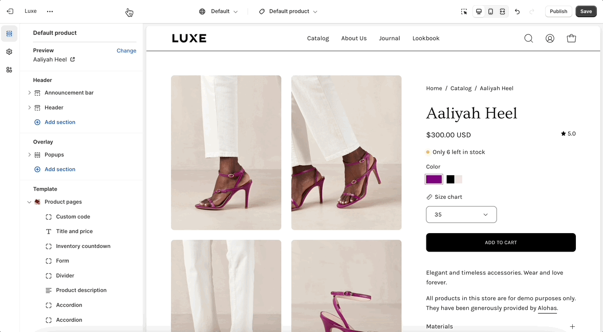 This section allows you to embed HTML or Liquid code, giving you the power to tailor your product pages to meet your unique needs.