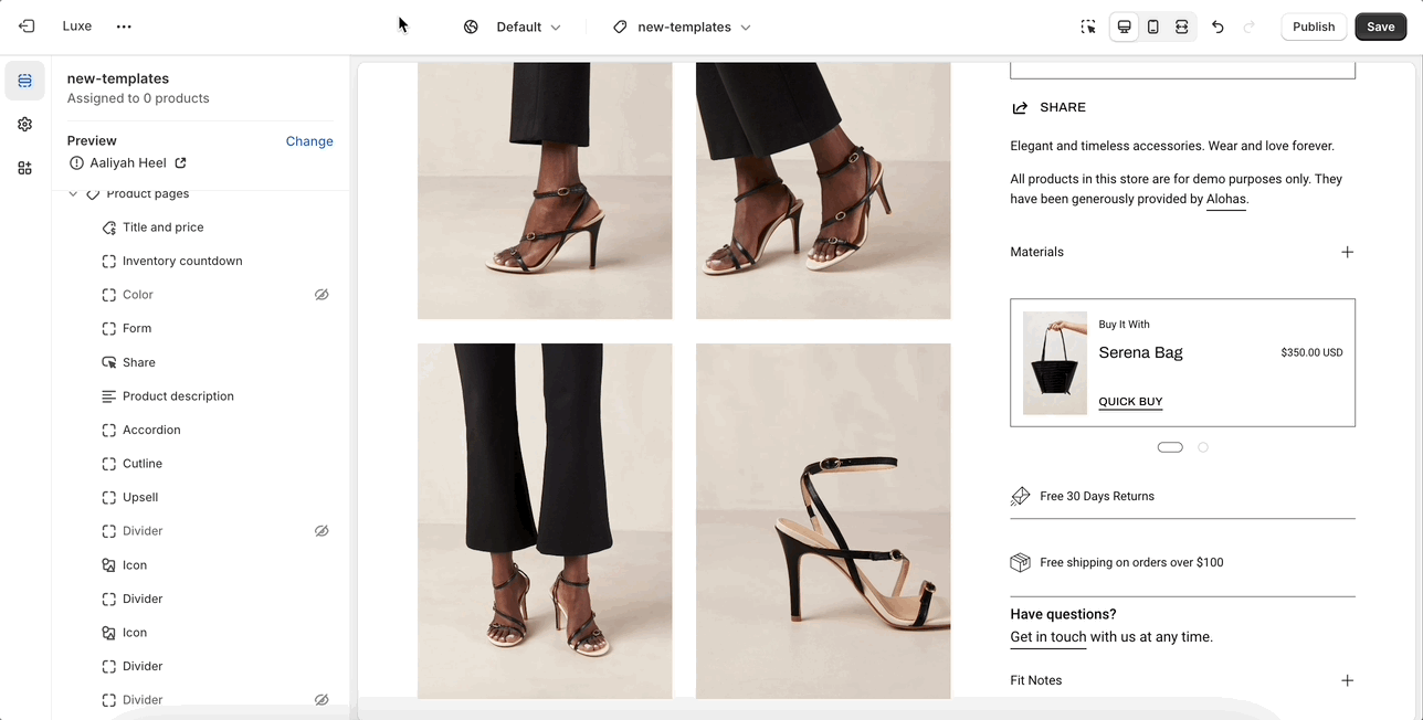 The Icon block highlights product features or benefits using visual icons, optional images, and supporting text. Ideal for building trust and conveying quick information.