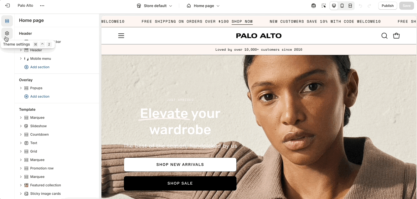 Note: Some sections have color settings. Section settings will overwrite the theme settings.