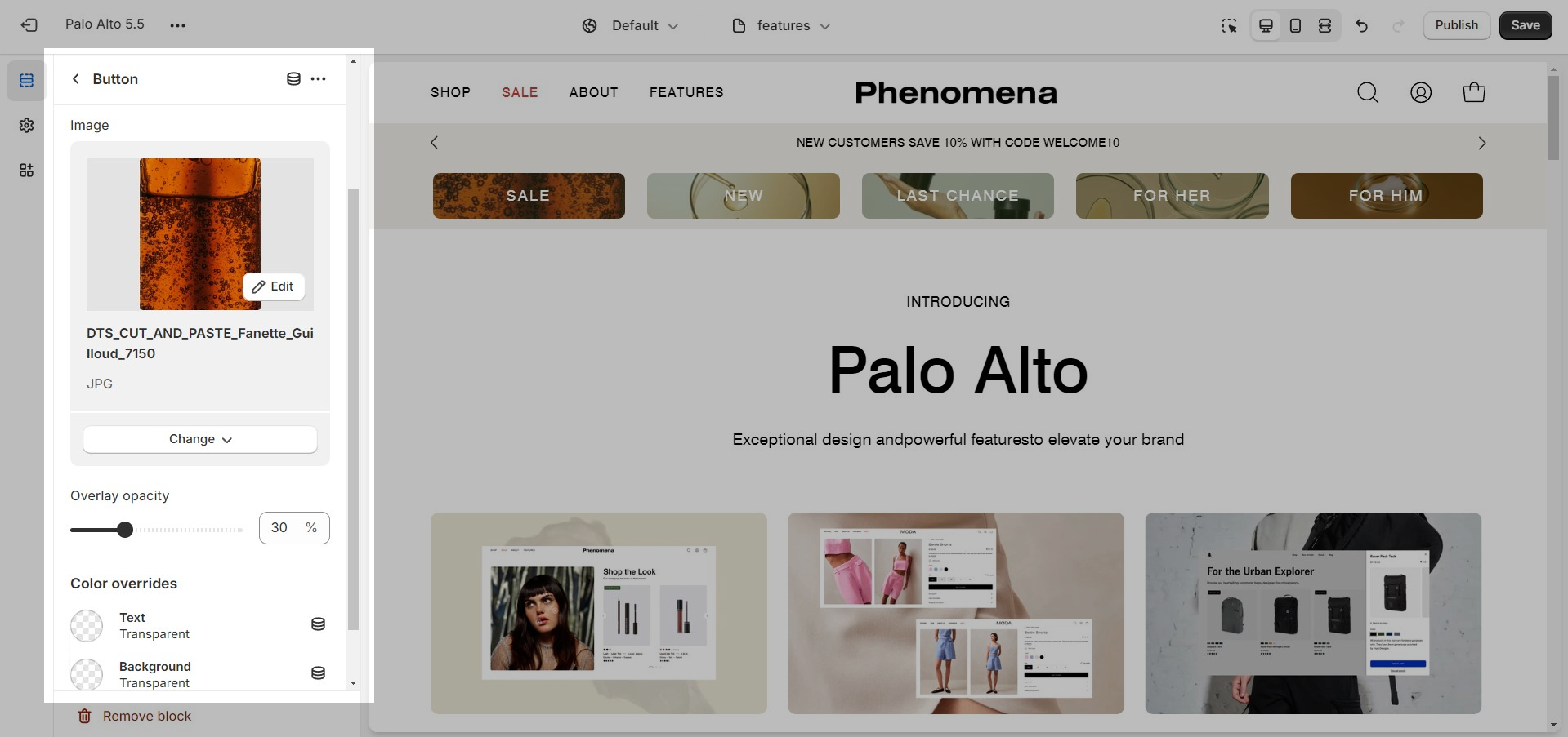 In the more general section settings, you will find all of the layout options and general styles for the sections such as: