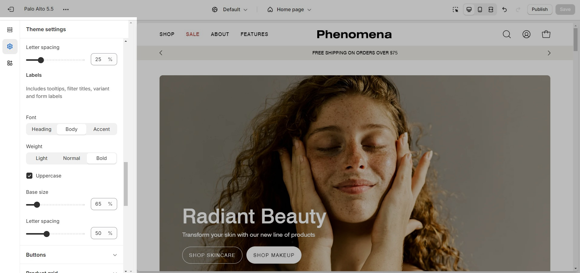 A new style of typography style, labels, allows you to set a separate style for your tooltips, filter titles, product variants, and form labels. Find these new options in the theme settings tab: