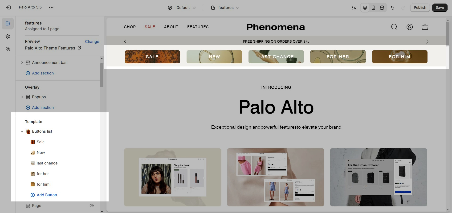 This section allows you to add a customizable list of buttons that you can use as a banner to break between content or as an addition to your header.