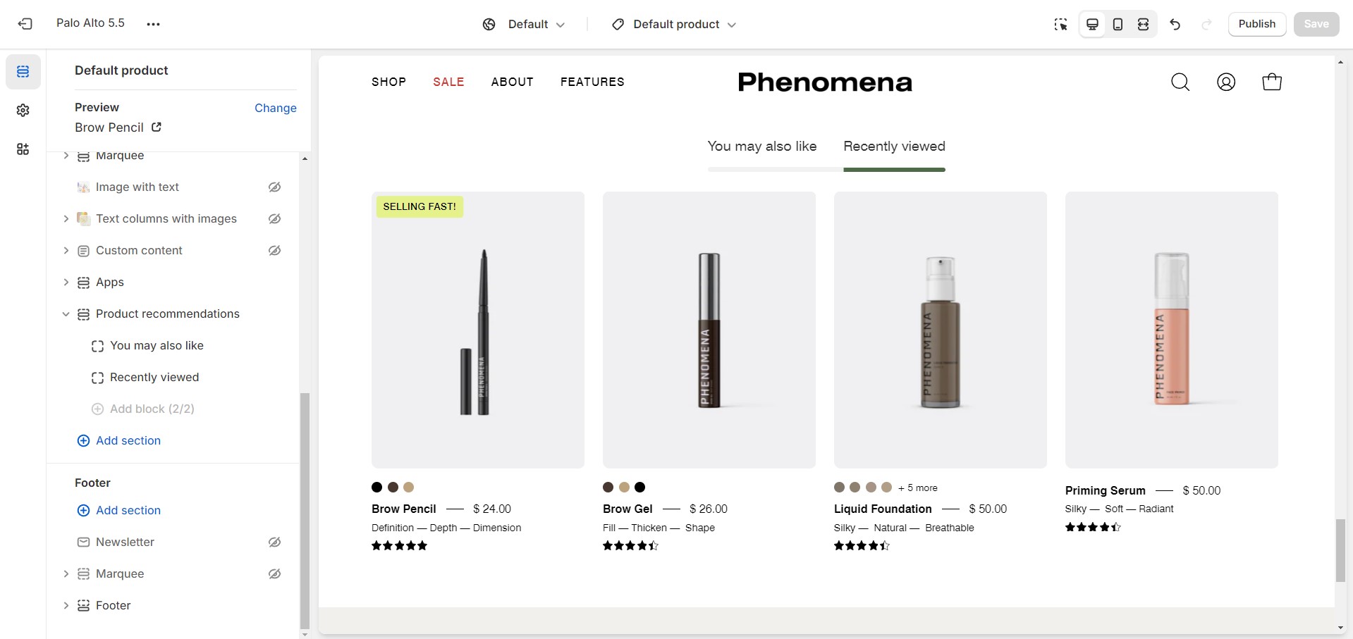 A new addition to our product recommendations section is the ability to add a 'Recently viewed' block. The content here will be automatically generated as customers browse trough your store.