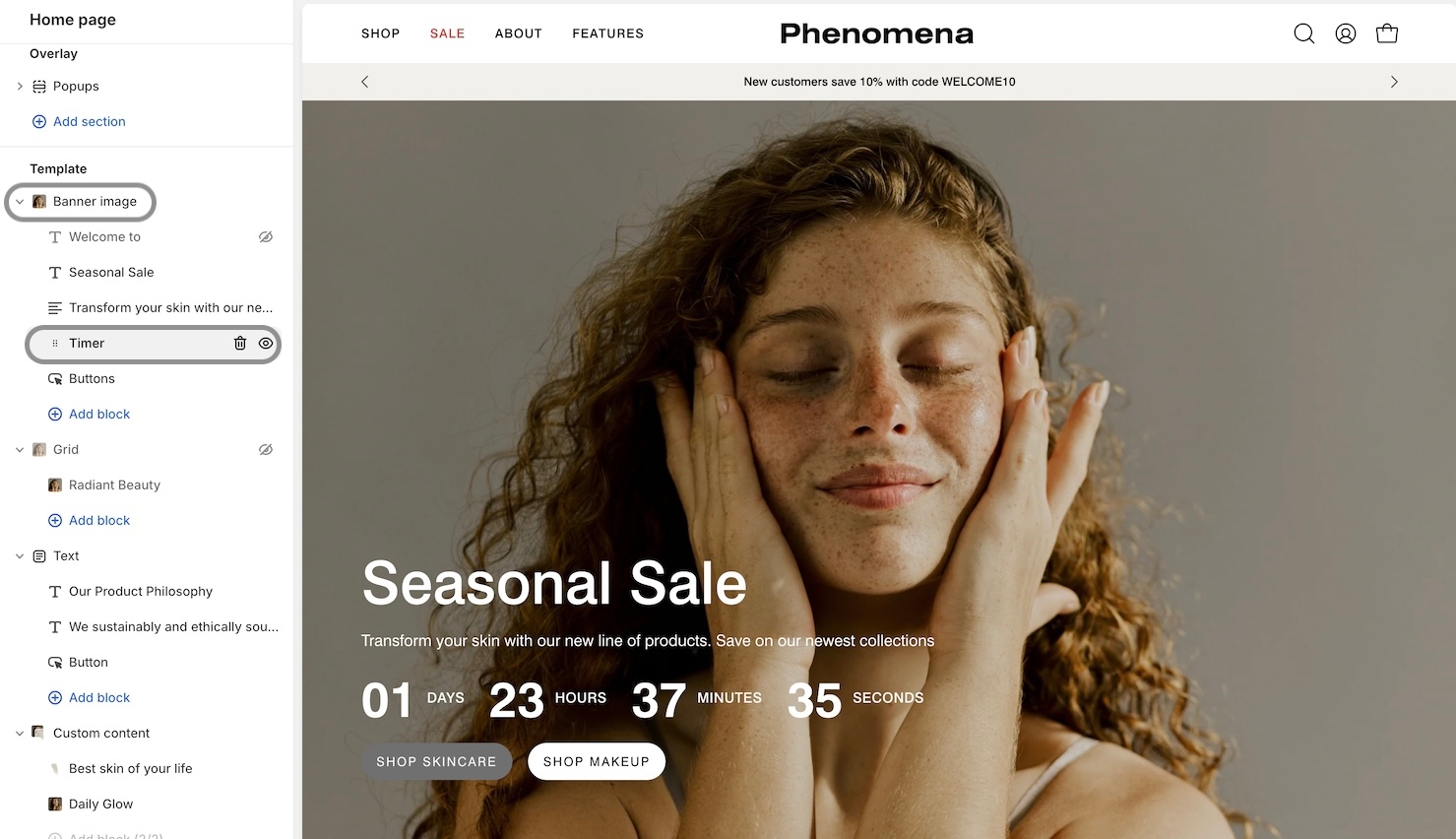 The "Banner image" section now includes a countdown timer block. Now you have even more options to promote flash sales with Palo Alto: