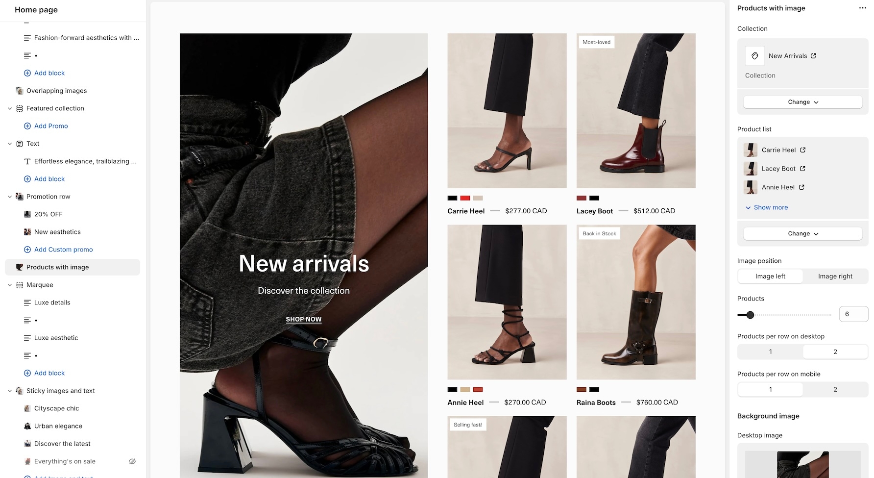 Another exciting new section in this version of Palo Alto is Products with image. Build a promotional message with an image and include the product line next to it: