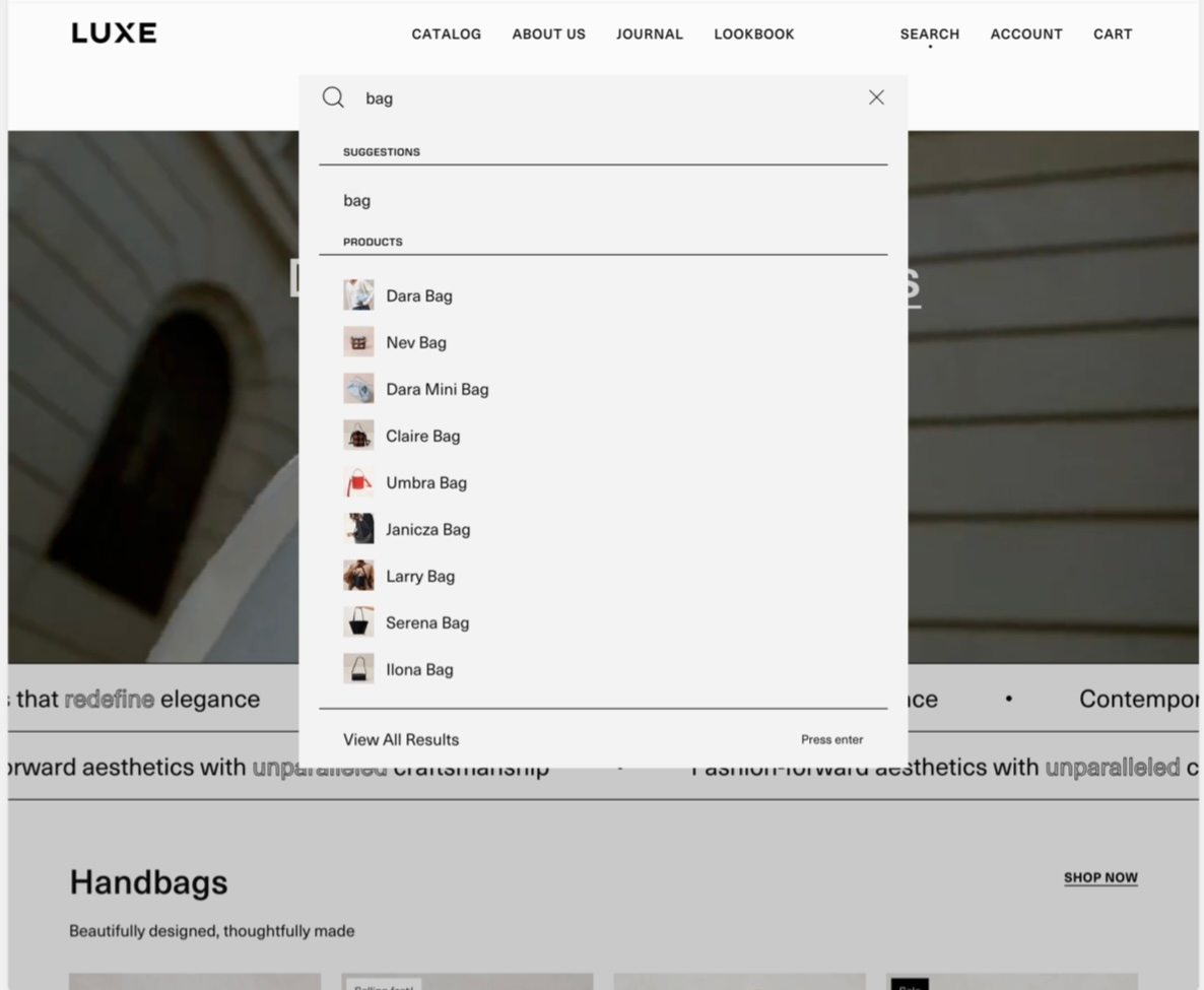 In this version of Palo Alto, we've refined the search experience with improved colors, borders and the layout for both the mobile and desktop dropdown designs: